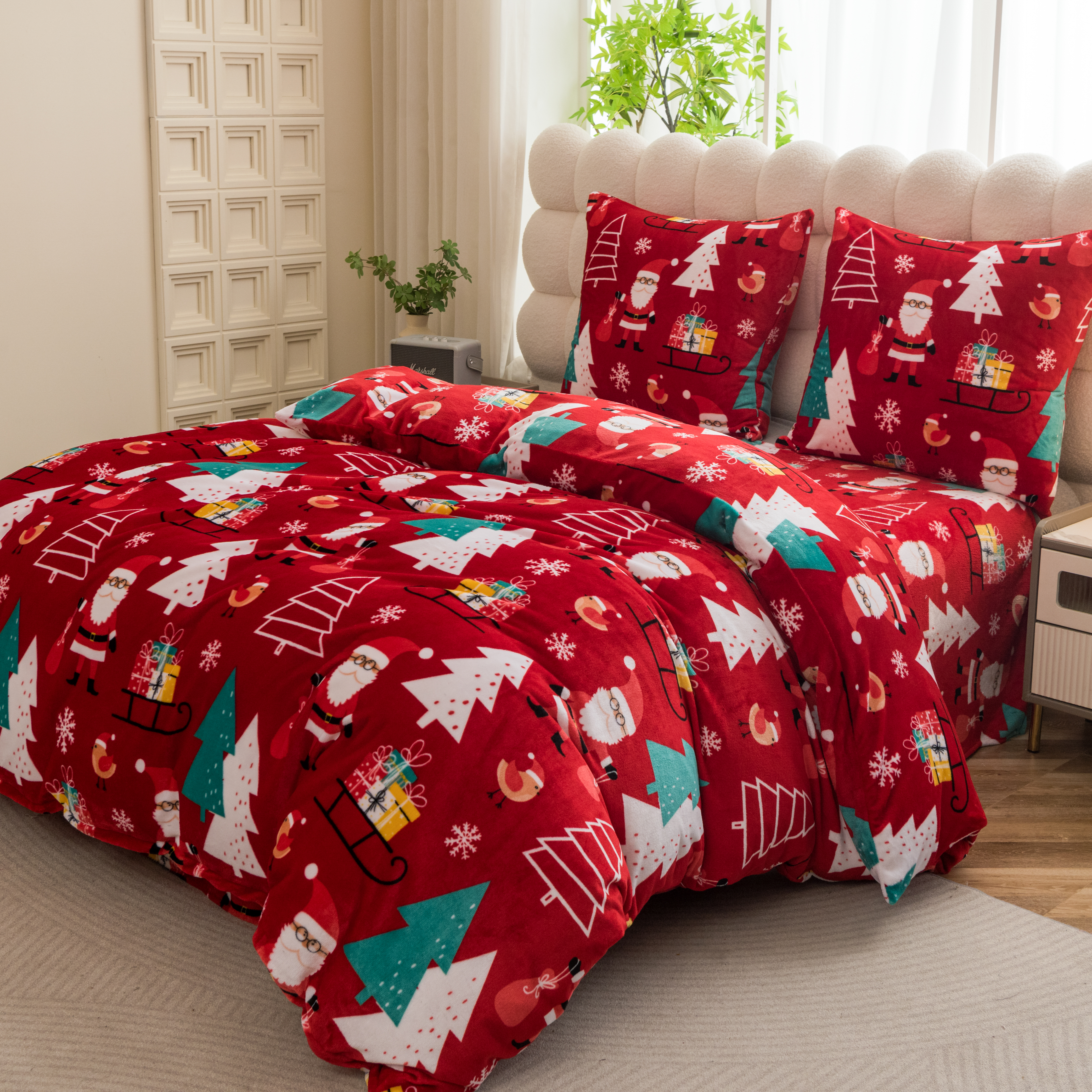 Pościel świąteczna pluszowa 160x200 + 2x70x80 – zimowa, ciepła, miękka