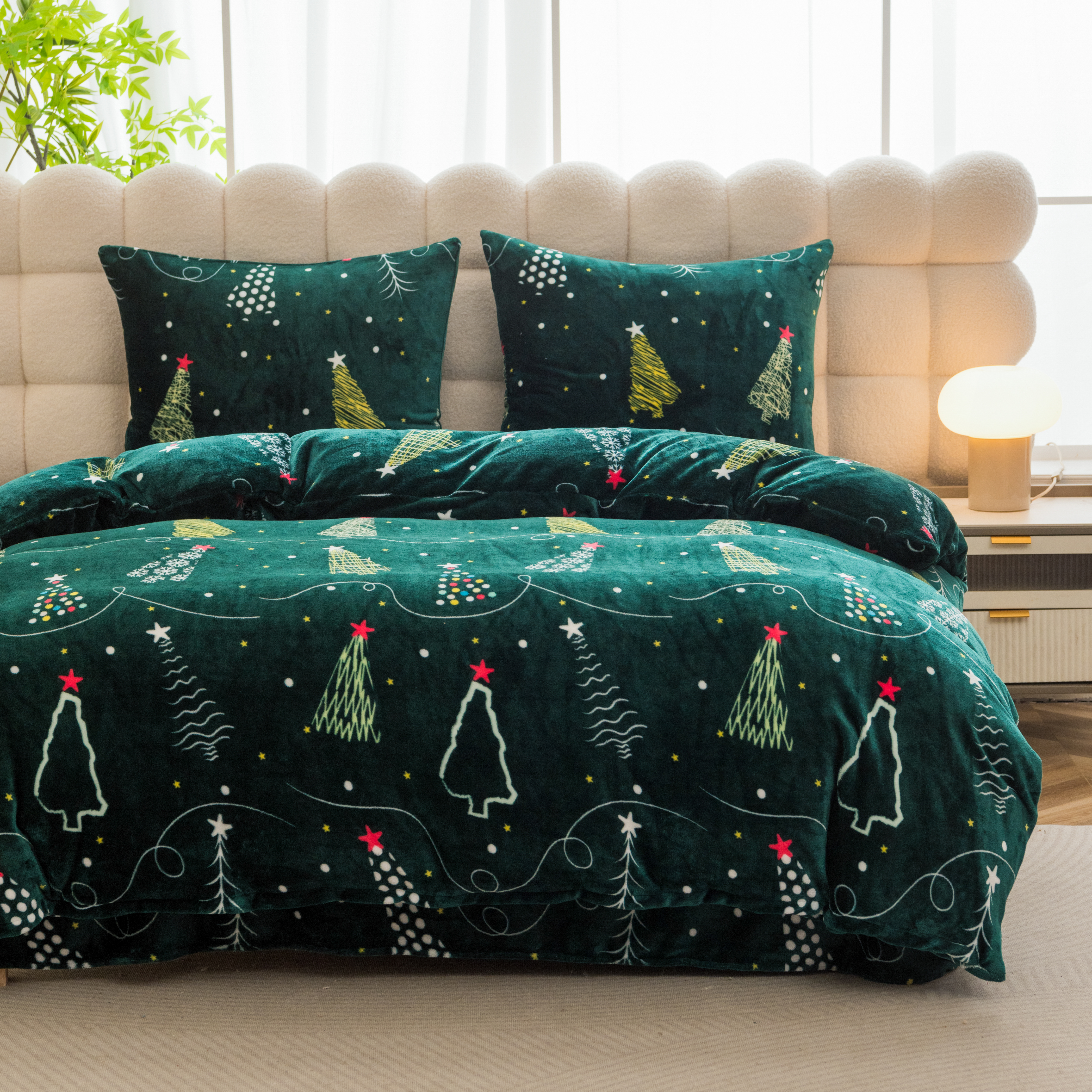 Pościel Świąteczna 220x200 Choinki Zielona Pluszowa
