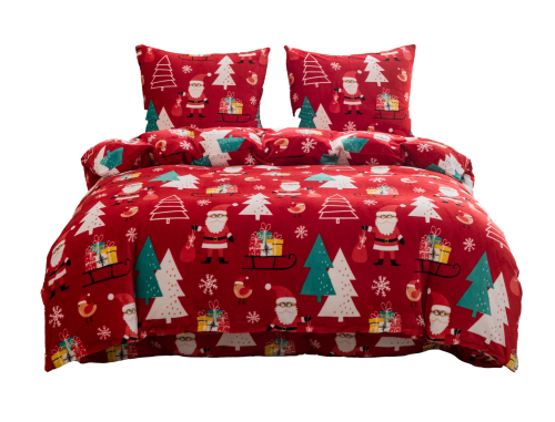 Pościel Świąteczna 220x200 Gwiazdorki Choinki Czerwone Pluszowa