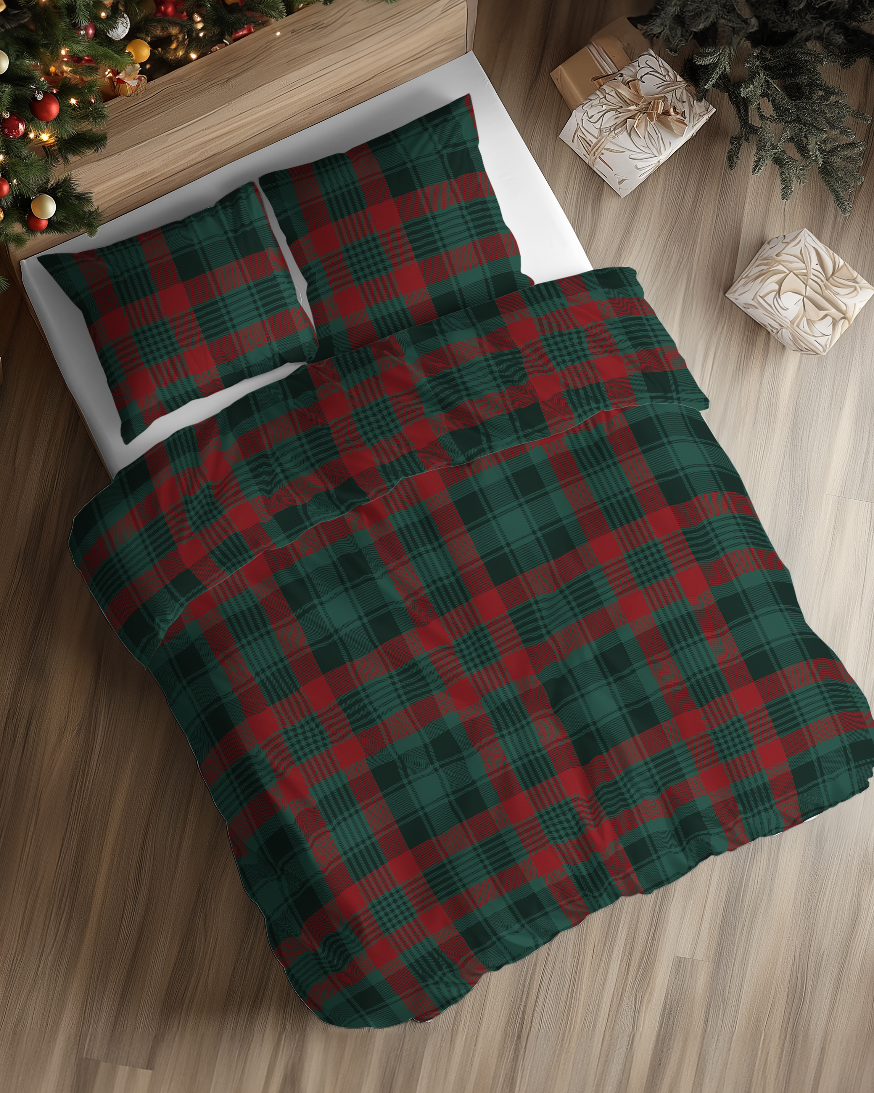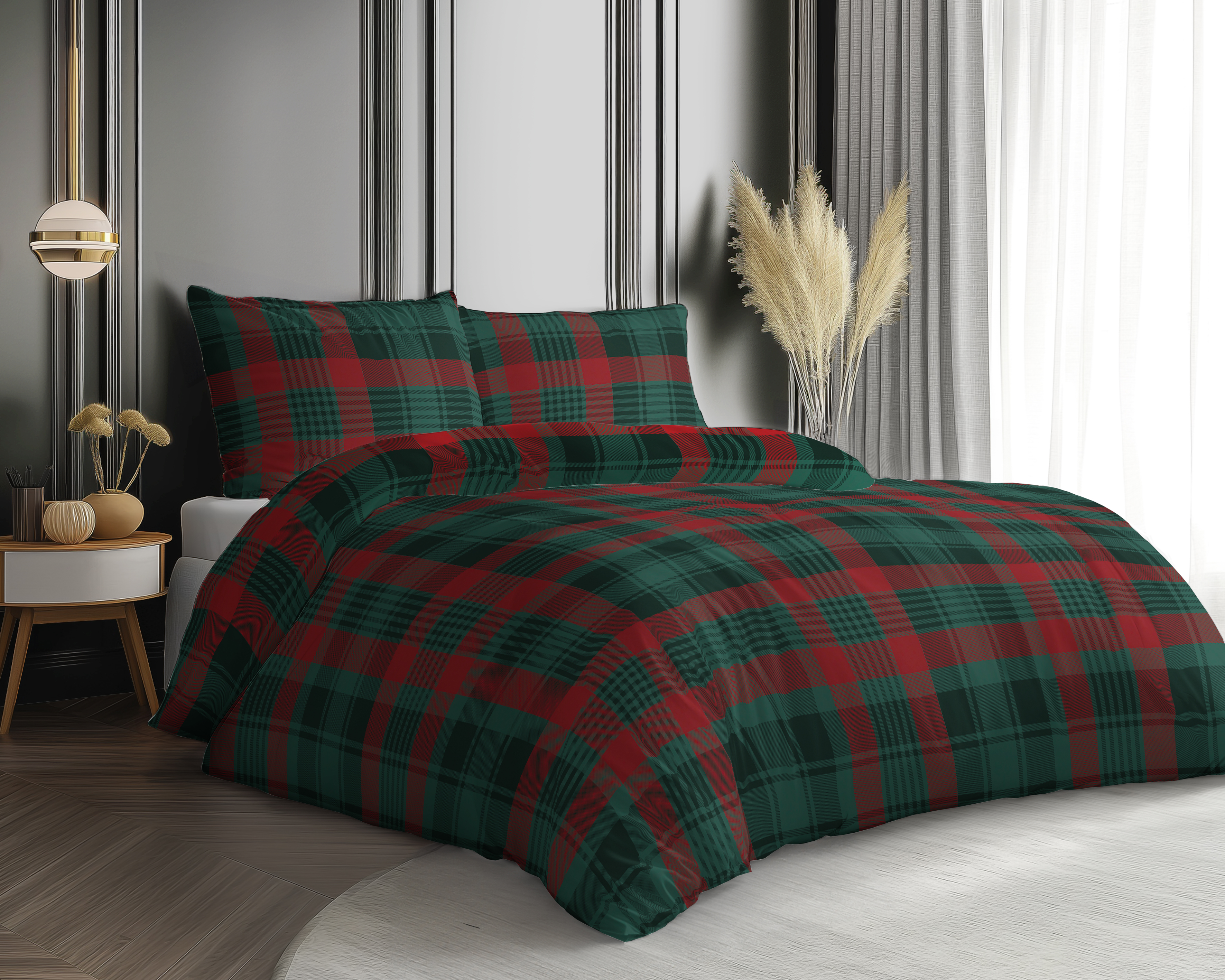 Pościel Świąteczna Satynowa 220x200 Kratka Czerwona / Zielona
