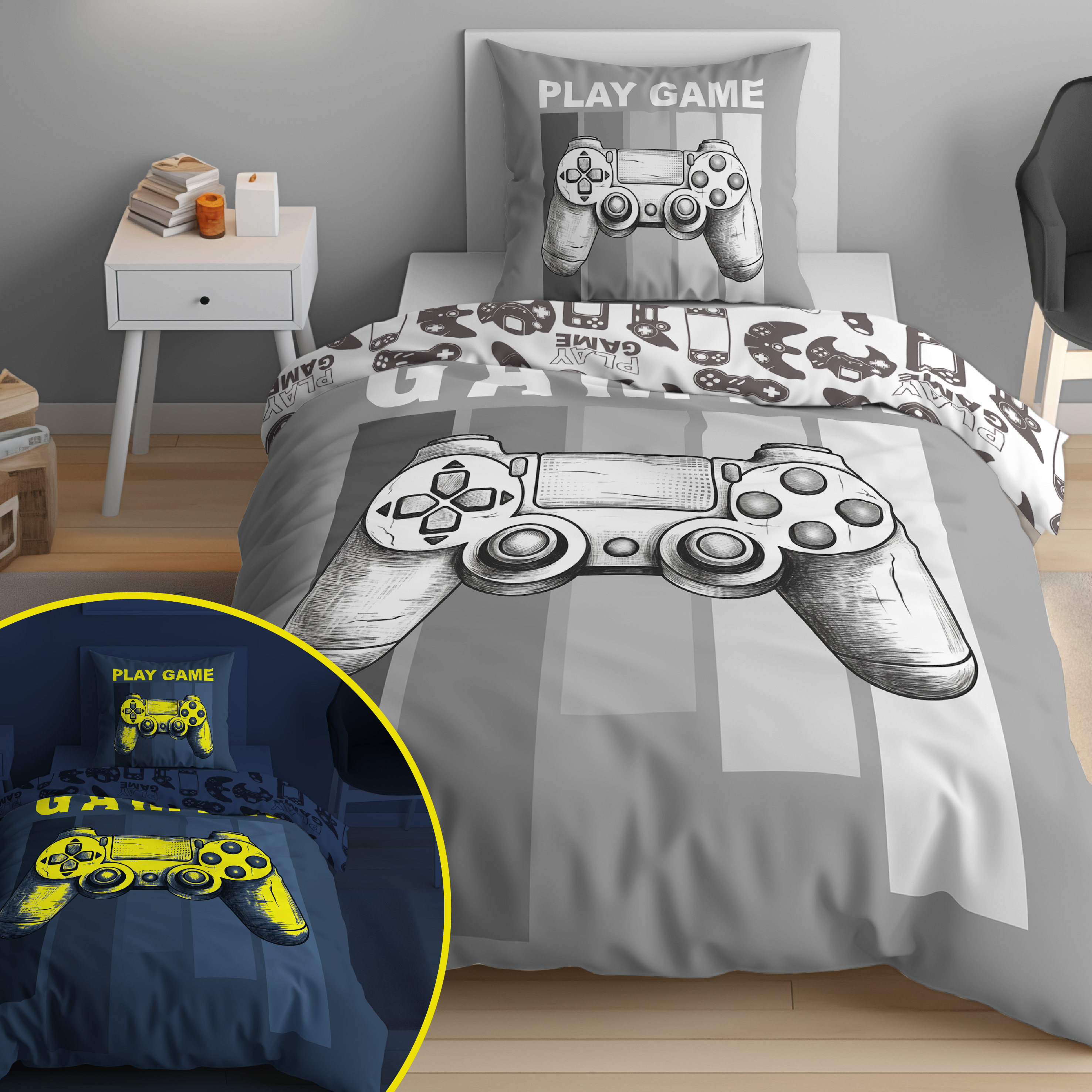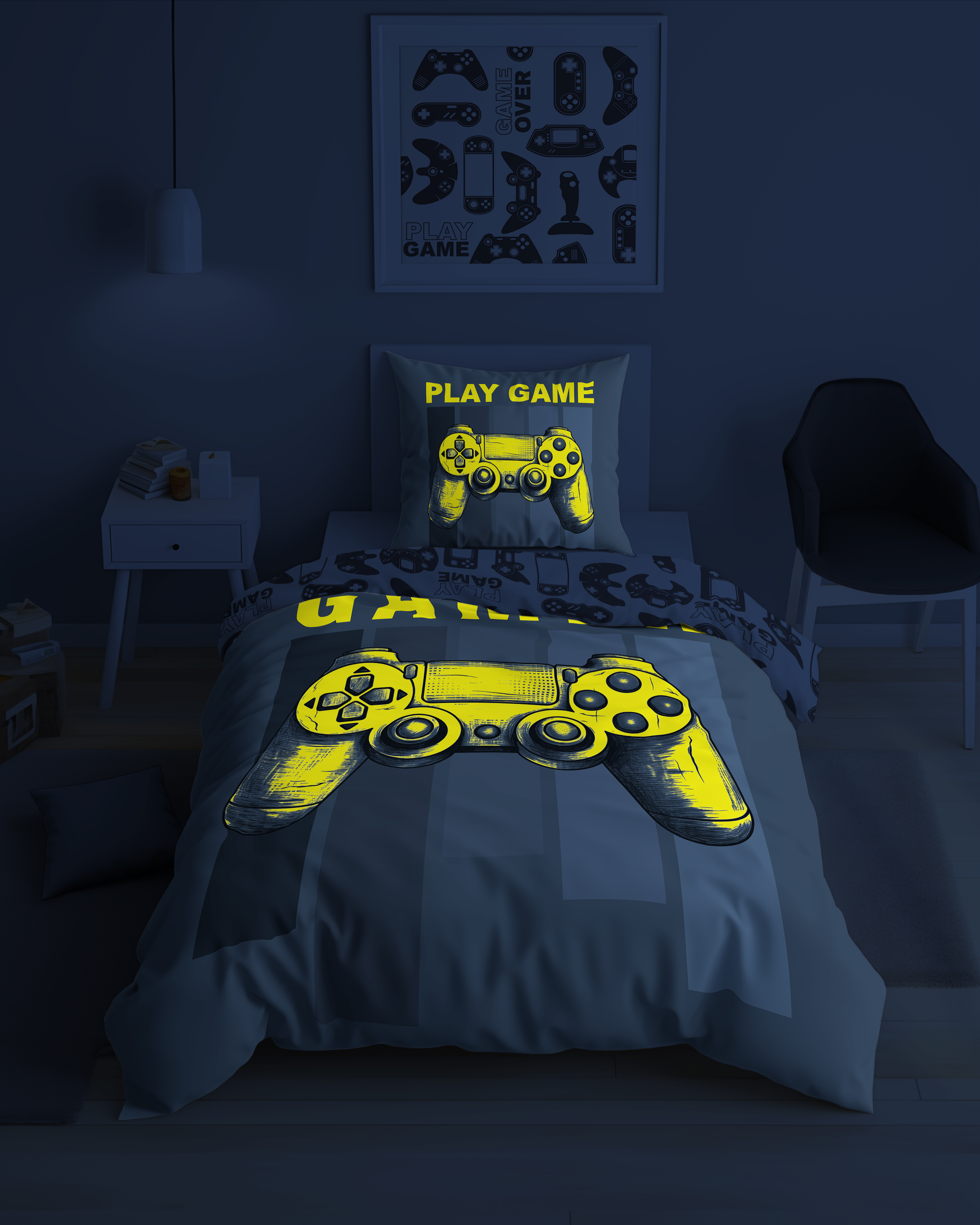 Pościel Świecąca w ciemności 160x200 z wizerunkiem pada do gier. Pościel młodzieżowa GAMER, idealna dla gracza.