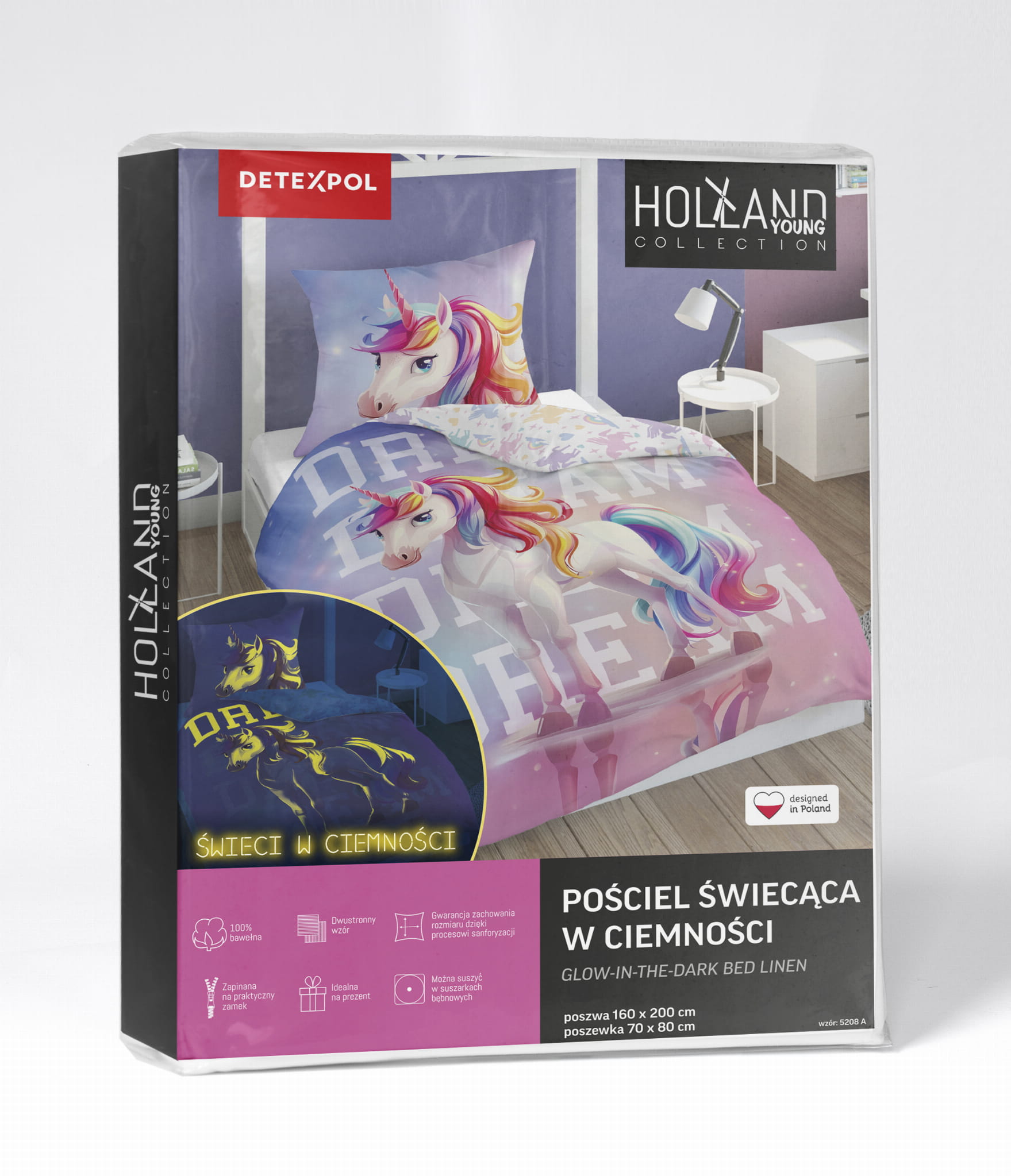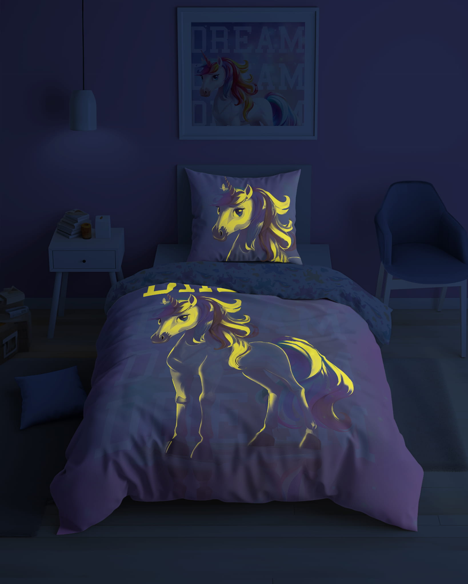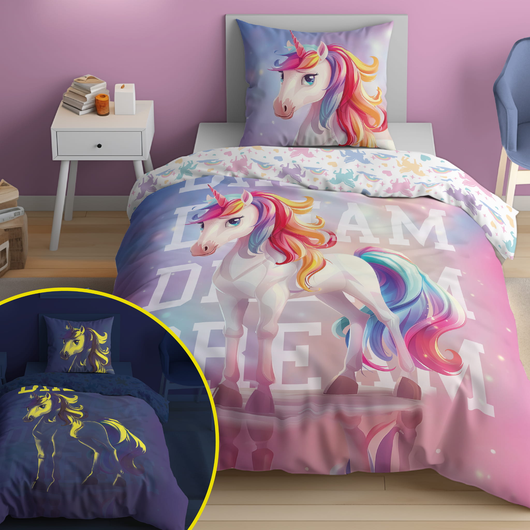 Pościel z wizerunkiem JEDNOROZCA - ŚWIECĄCA W CIEMNOŚCI