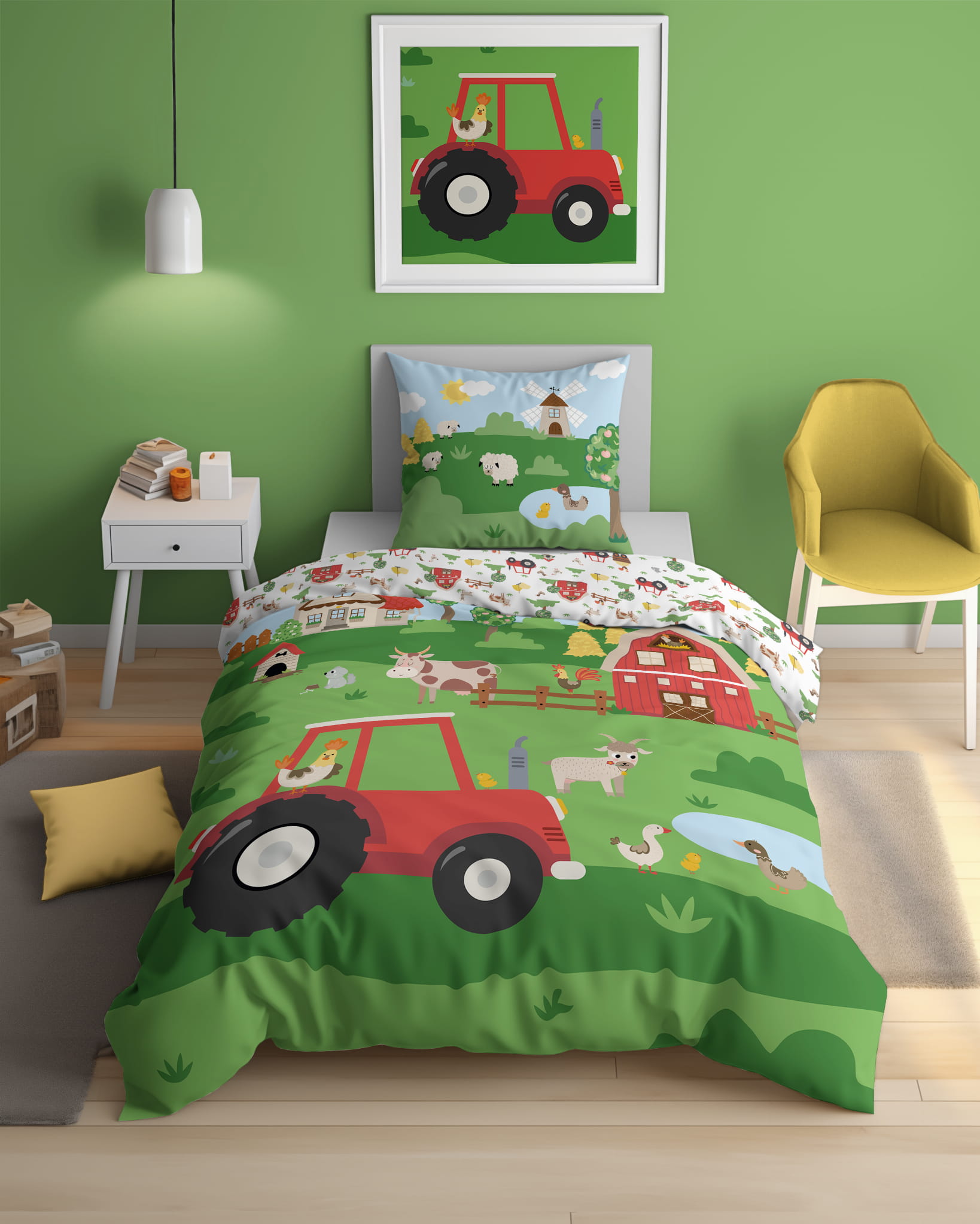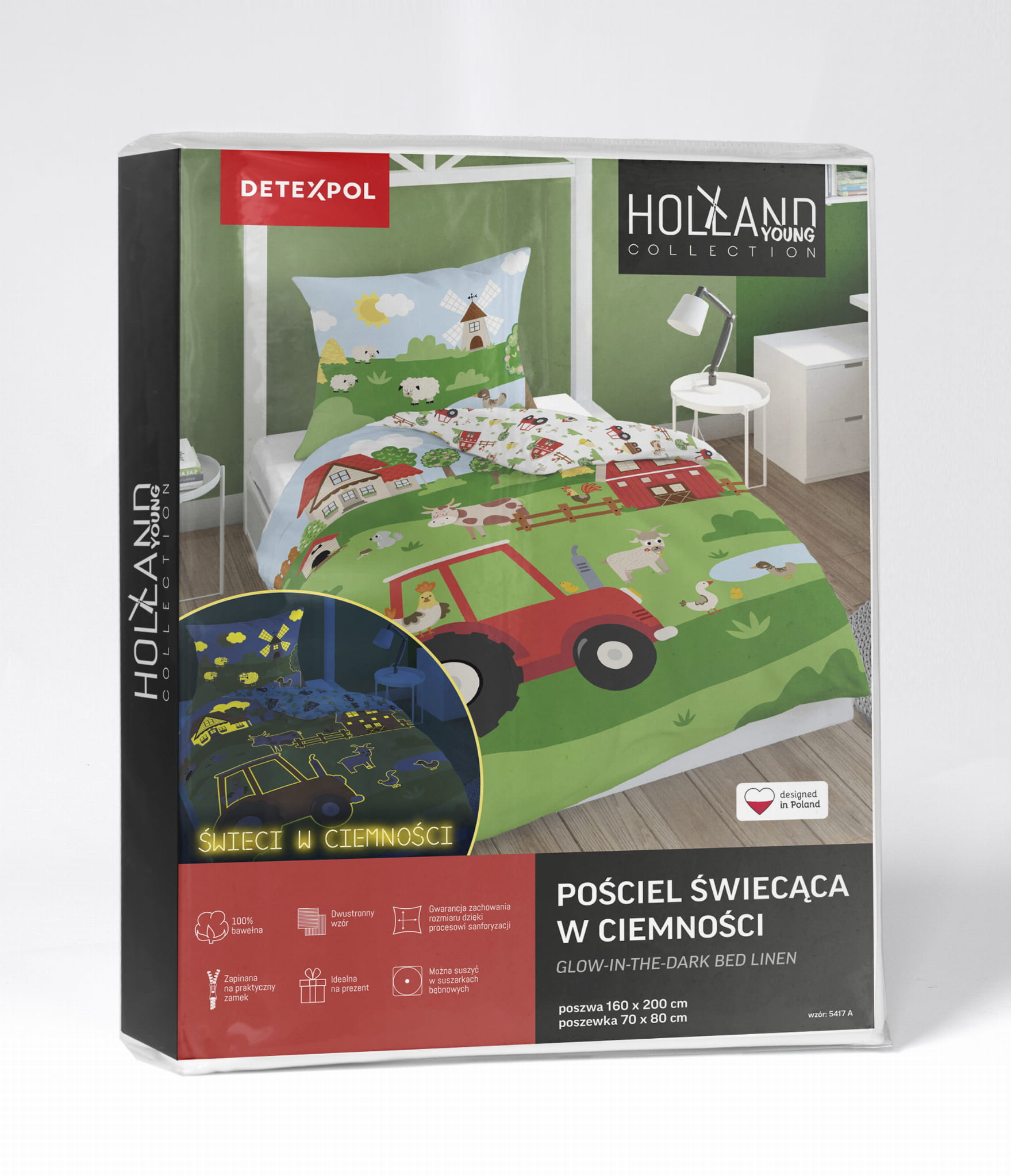 Pościel Świecąca w ciemności 160x200 Traktorek Czerwony Farma