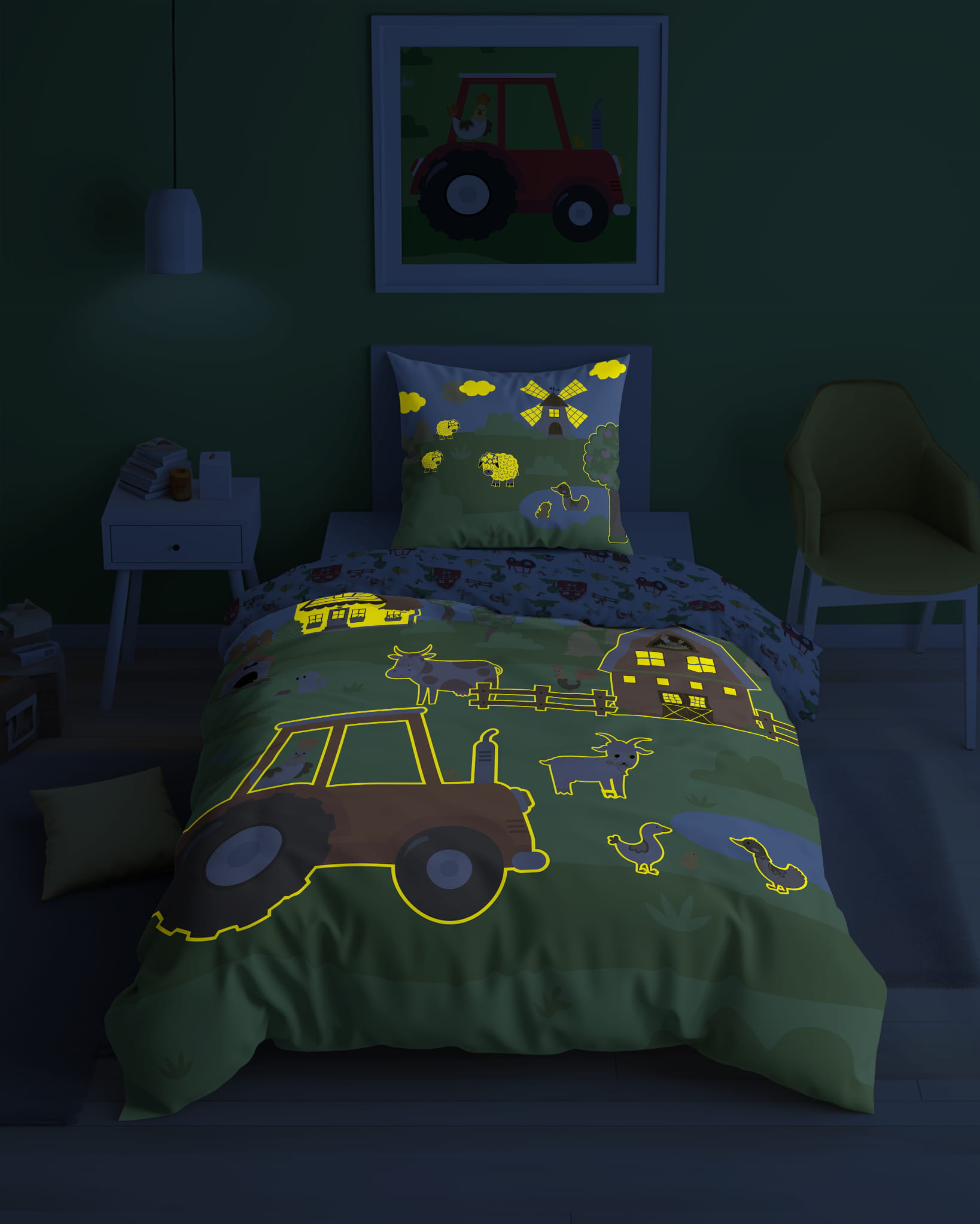 Pościel z wizerunkiem Traktor - ŚWIECĄCA W CIEMNOŚCI 160x200