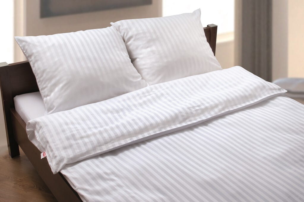 Pościel Z Adamaszku 160x200 Biała Pasy Co 2cm