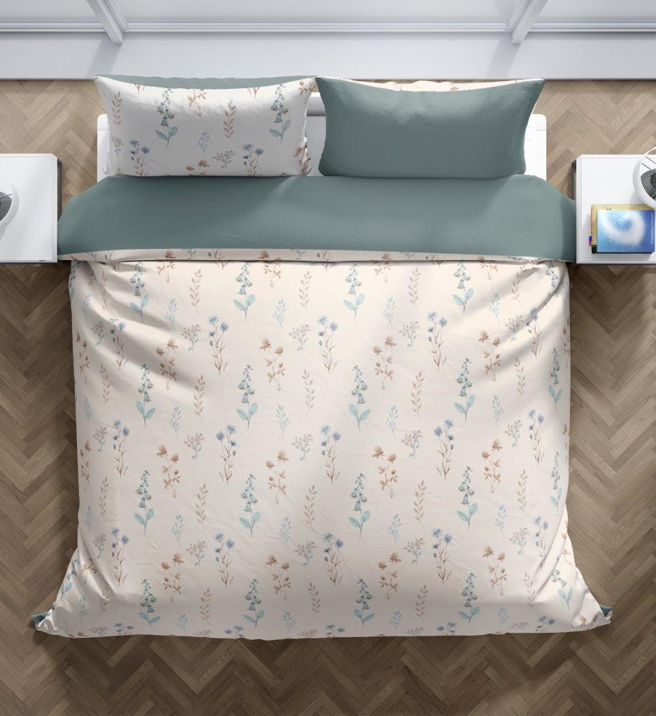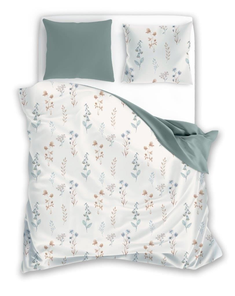Pościel bawełniana 220x200 Cottage Kwiaty Zieleń Beż