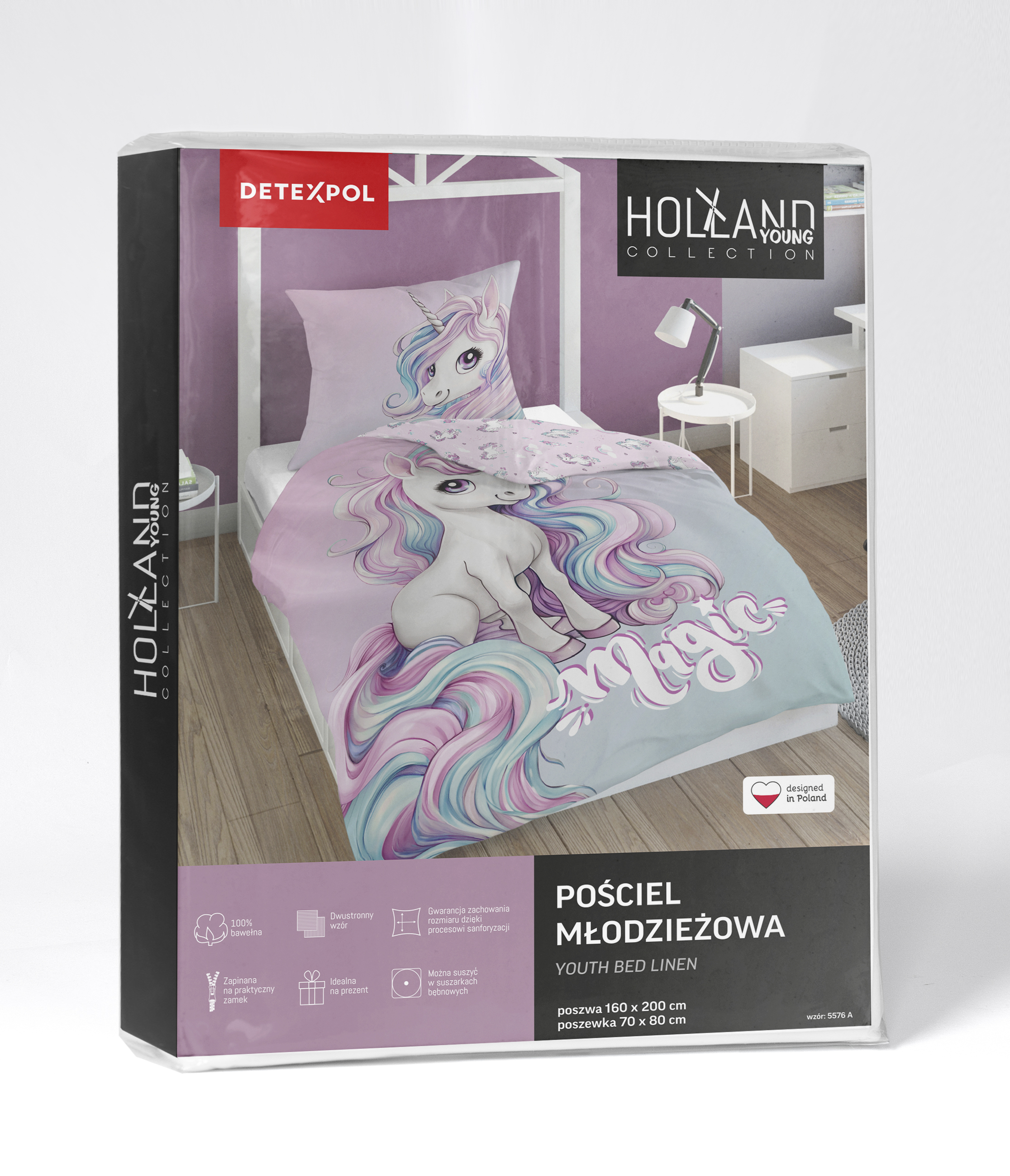 Pościel młodzieżowa z dwustronnym wzorem JEDNOROŻEC/ UNICORN w biegu została wykonana ze 100% przyjaznej skórze bawełny. Gwarantuje zdrowy i komfortowy sen dla każdego użytkownika. Pościele z tej serii to ciekawe propozycje dla dzieci i młodzieży. Pościel wyposażona jest w praktyczne zapięcia na zamek.