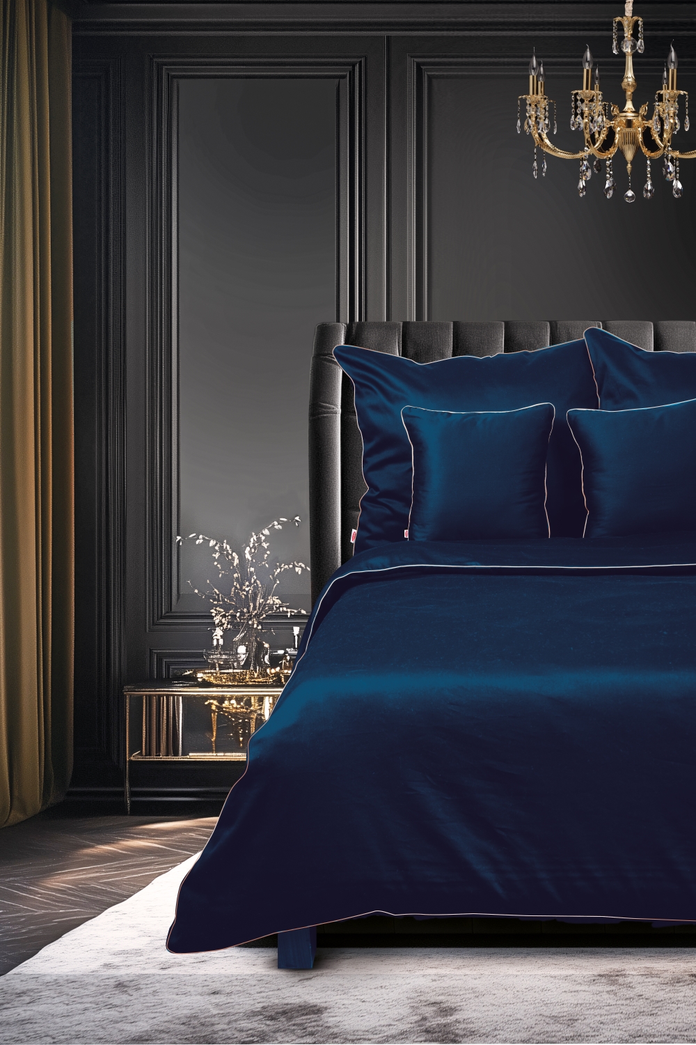 Pościel satynowa 140x200 jednobarwna GOLD LINE Granatowa