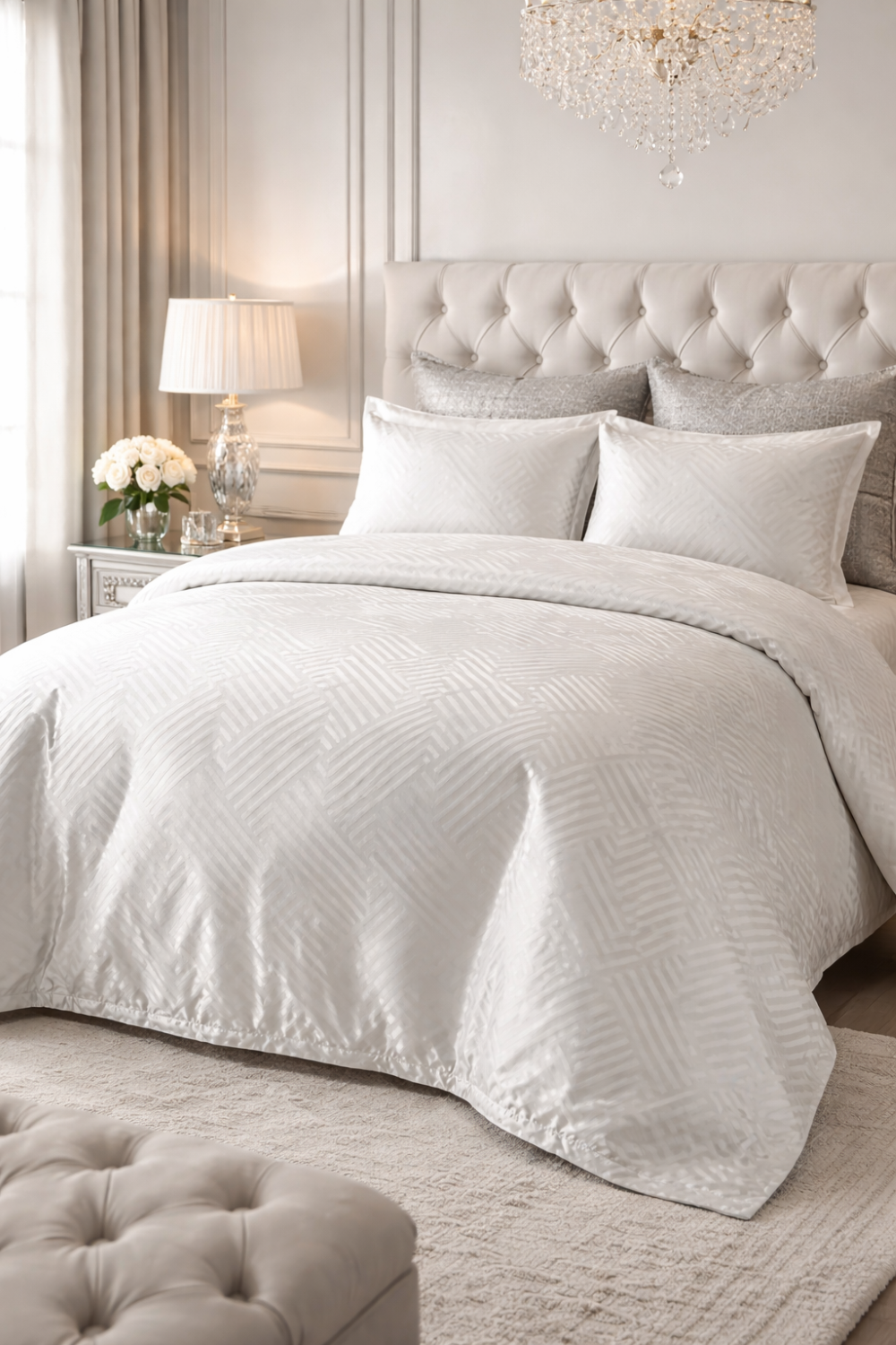 Elegancka i ponadczasowa pościel z adamaszku to idealny wybór dla osób ceniących wysoką jakość oraz klasyczny design. Subtelny, geometryczny wzór w paski o szerokości 1 cm nadaje jej luksusowy charakter i sprawia, że doskonale pasuje zarówno do nowoczesnych, jak i tradycyjnych sypialni.