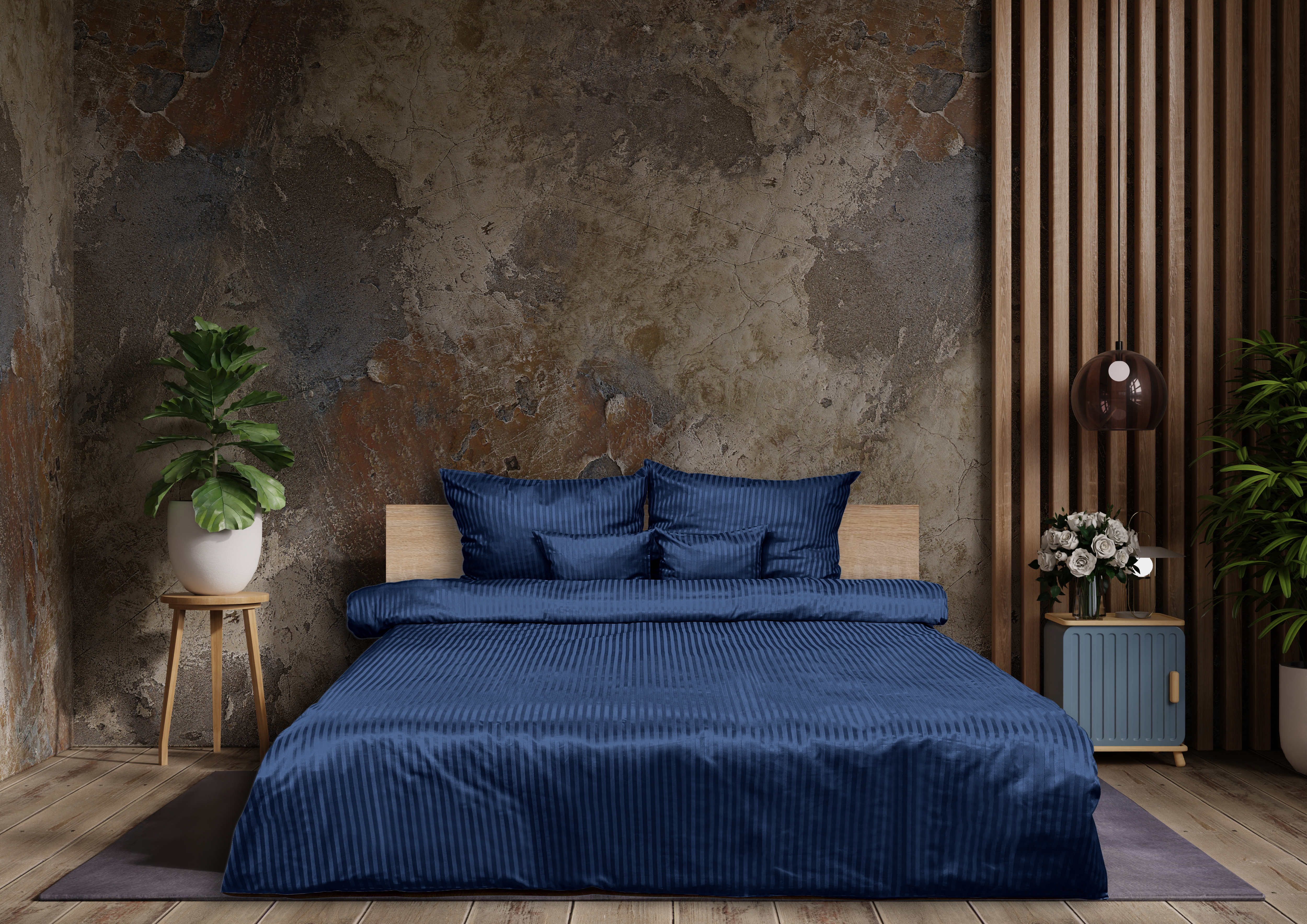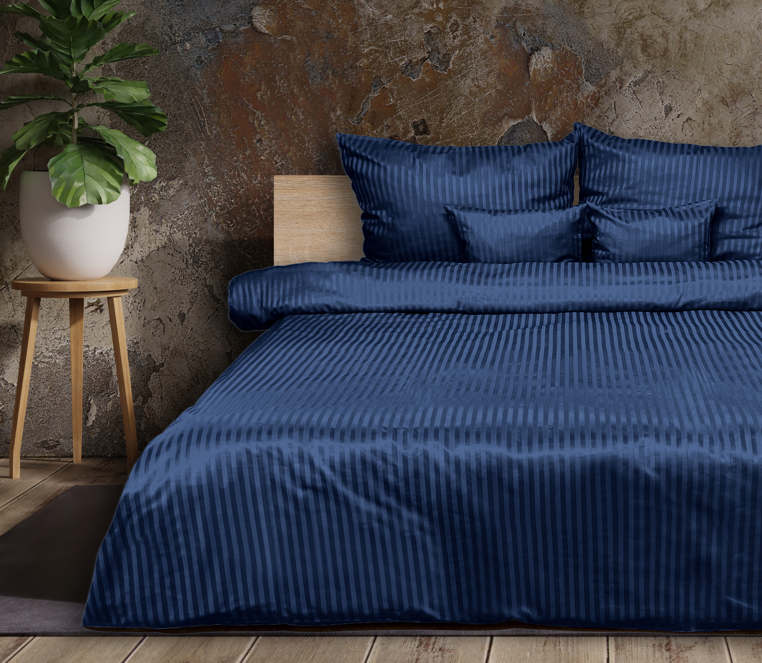 Komplet Pościeli z Adamaszku – Paski 1 cm Granatowa