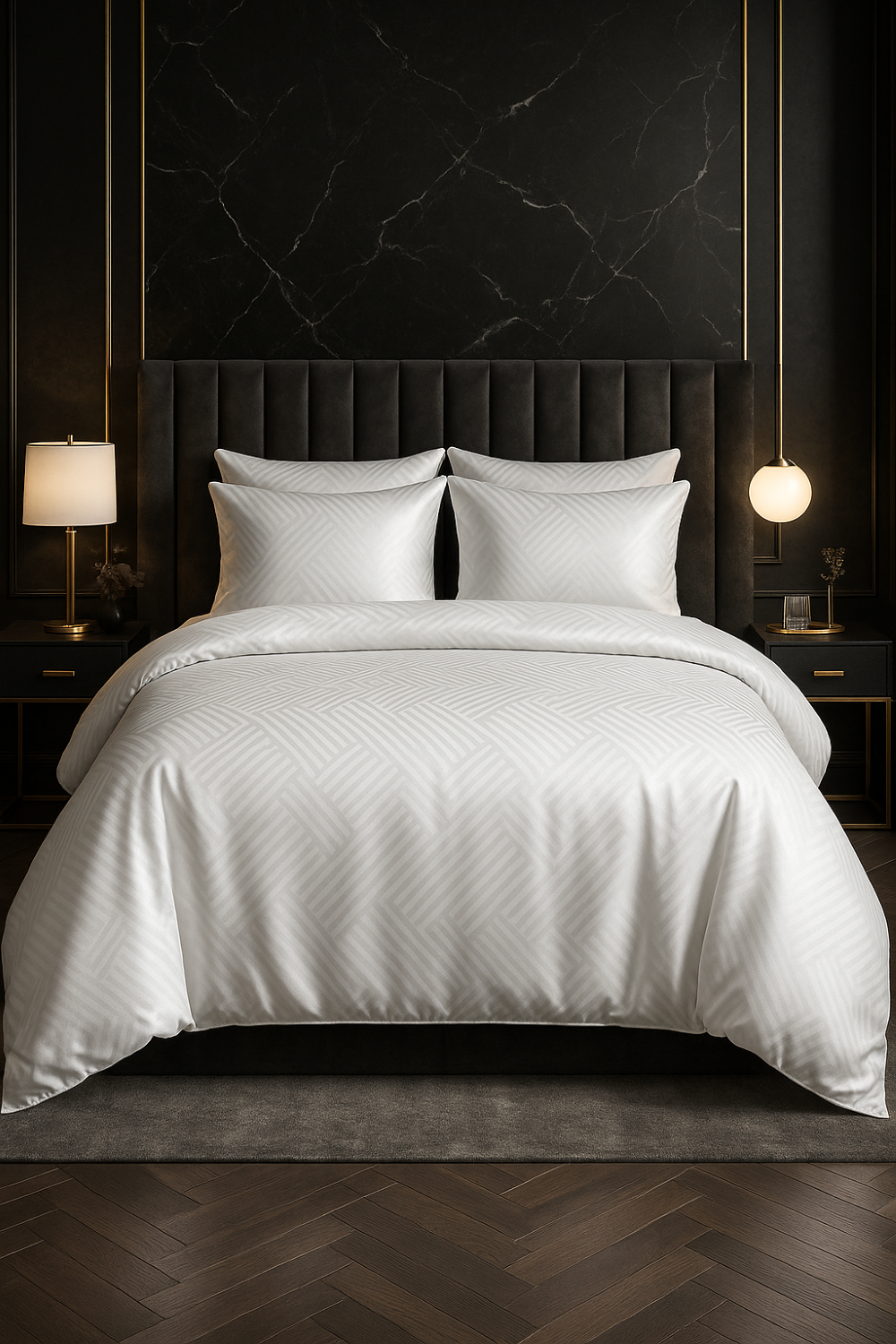 Elegancka i ponadczasowa pościel z adamaszku to idealny wybór dla osób ceniących wysoką jakość oraz klasyczny design. Subtelny, geometryczny wzór w paski o szerokości 1 cm nadaje jej luksusowy charakter i sprawia, że doskonale pasuje zarówno do nowoczesnych, jak i tradycyjnych sypialni.