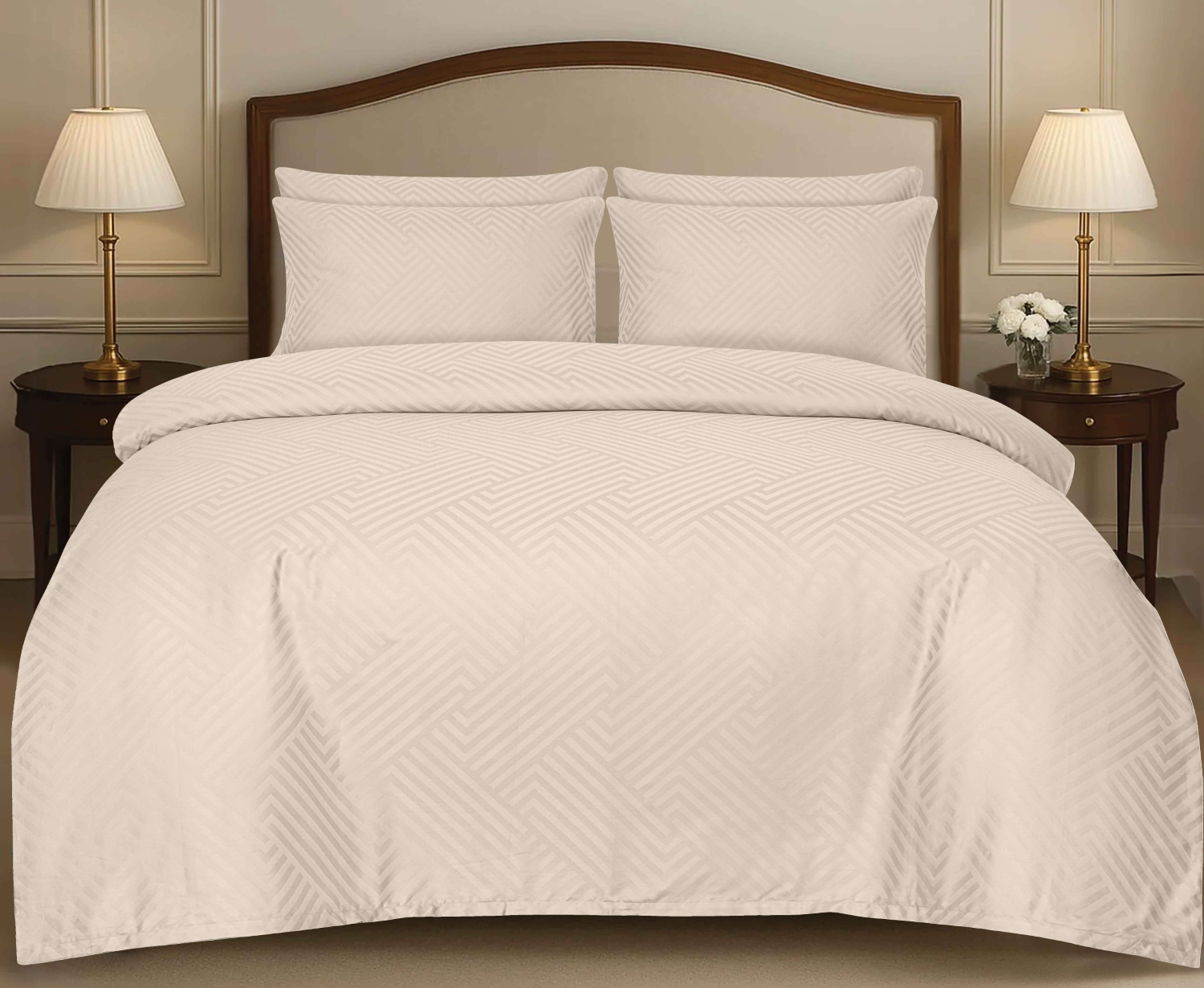 Pościel z Adamaszku 220×200 – Geometryczna, paski 1 cm kremowa/beżowa