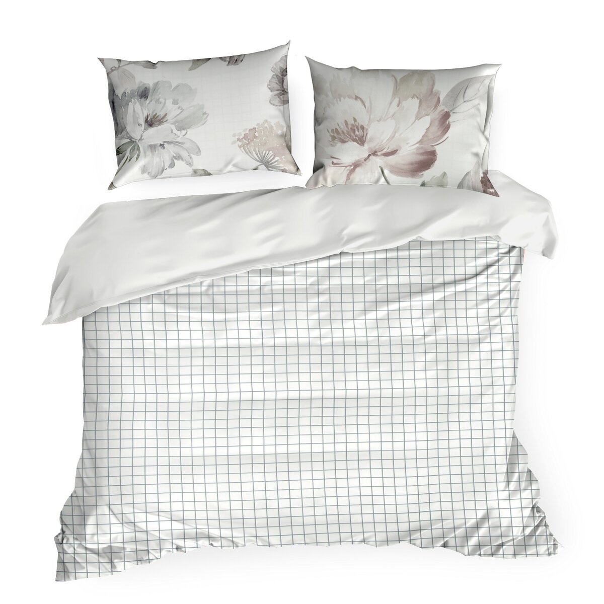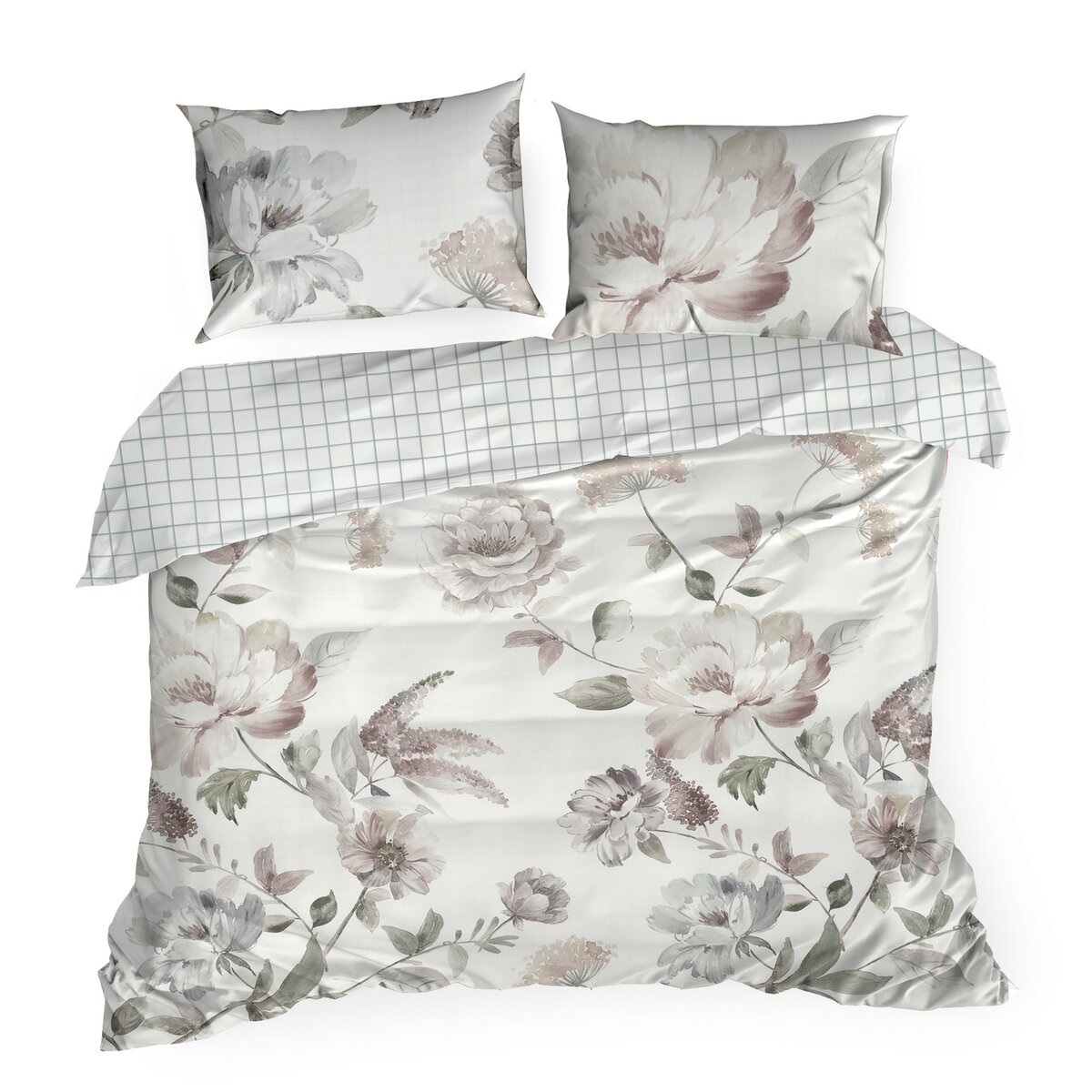 Pościel z Makosatyny bawełnianej 160x200 Rosalia Kwiaty biała/pudrowa Premium