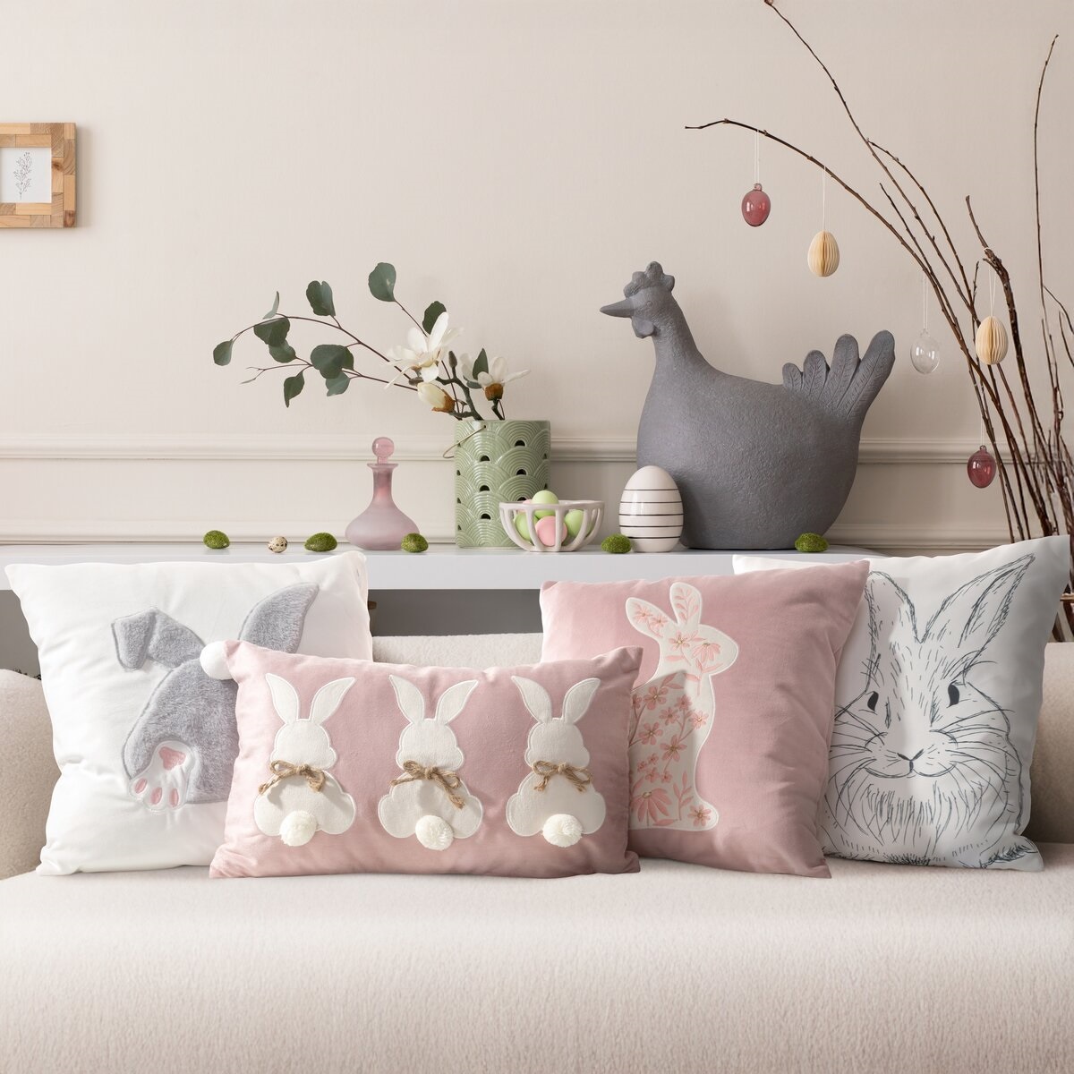 Stwórz wyjątkową, wiosenną atmosferę w swoim wnętrzu dzięki świątecznej poszewce Królik Wielkanocny. Klasyczne połączenie bieli i czerni z uroczym wielkanocnym motywem królika sprawia, że poszewka jest stylowym, a jednocześnie radosnym dodatkiem do salonu, sypialni lub jadalni.