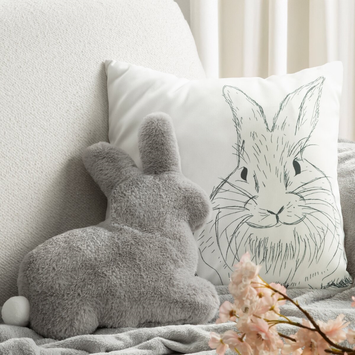 Poszewka świąteczna 45 × 45 cm Królik Wielkanocny – biało-czarna