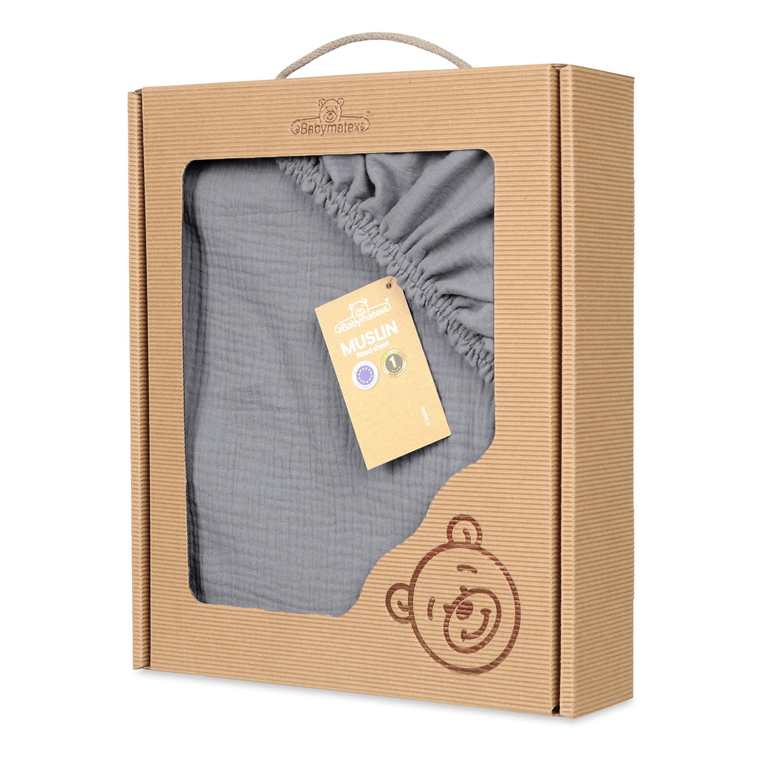 Prześcieradło MUSLIN z gumą na materac roz. 60x120 cm, muślina dwuwarstwowa opakowanie prezentowe