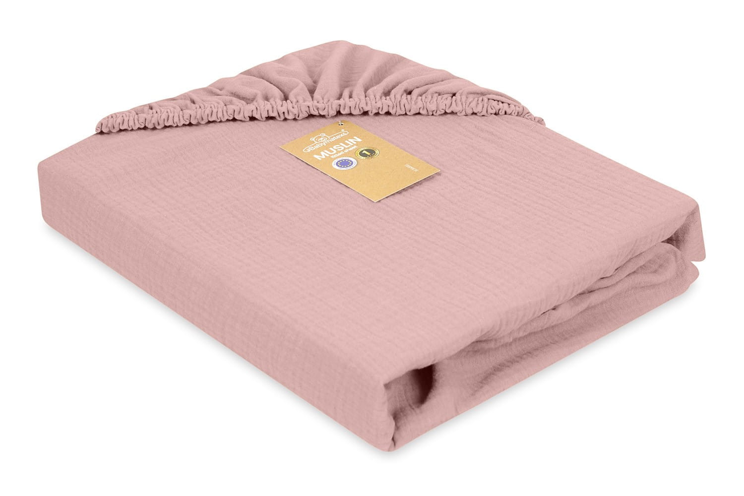 Prześcieradło MUSLIN Z Gumą 70x140x10 W Pudełku Pudrowo Różowe