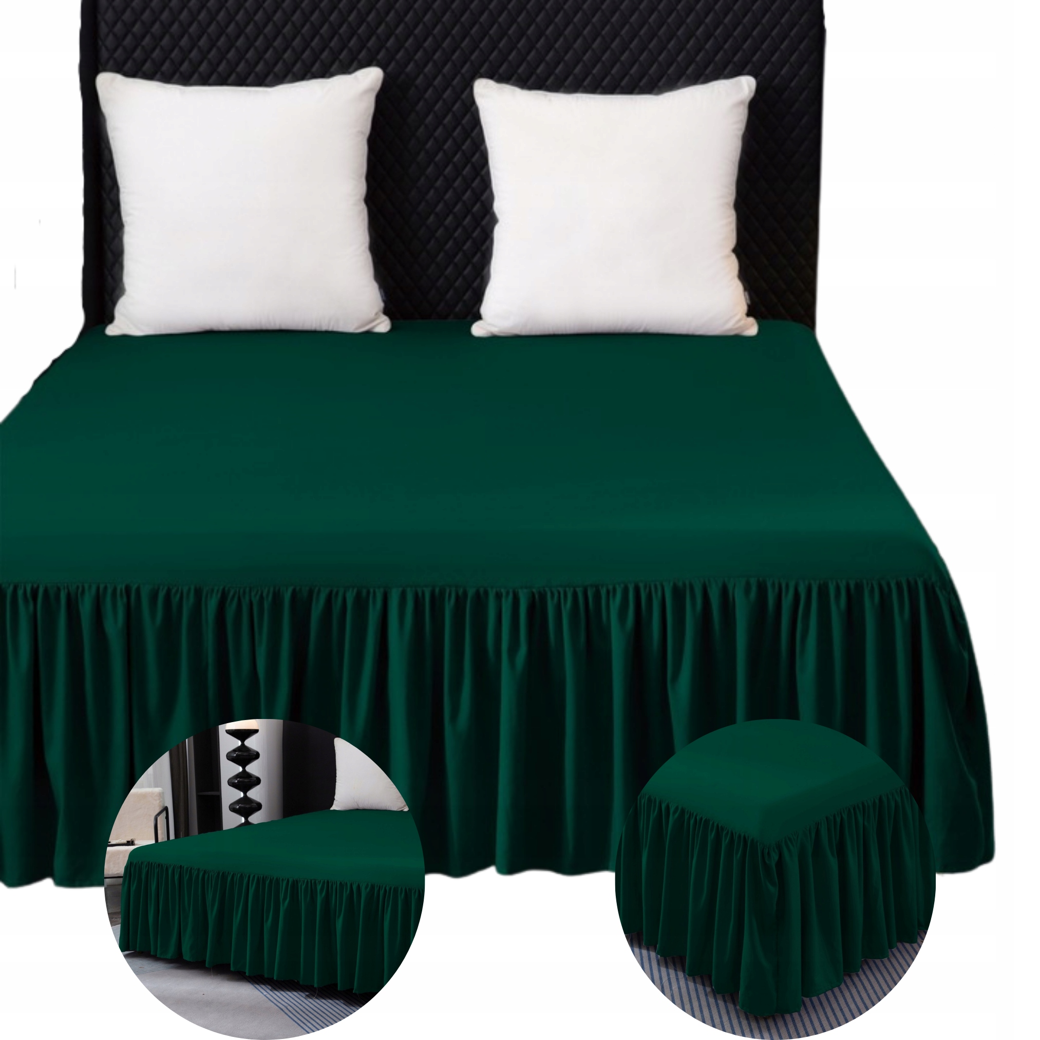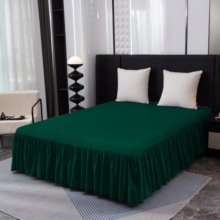 Prześcieradło z falbanką 160x200 – Zielony | Mikrofibra