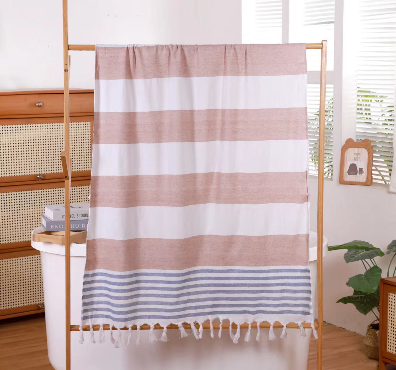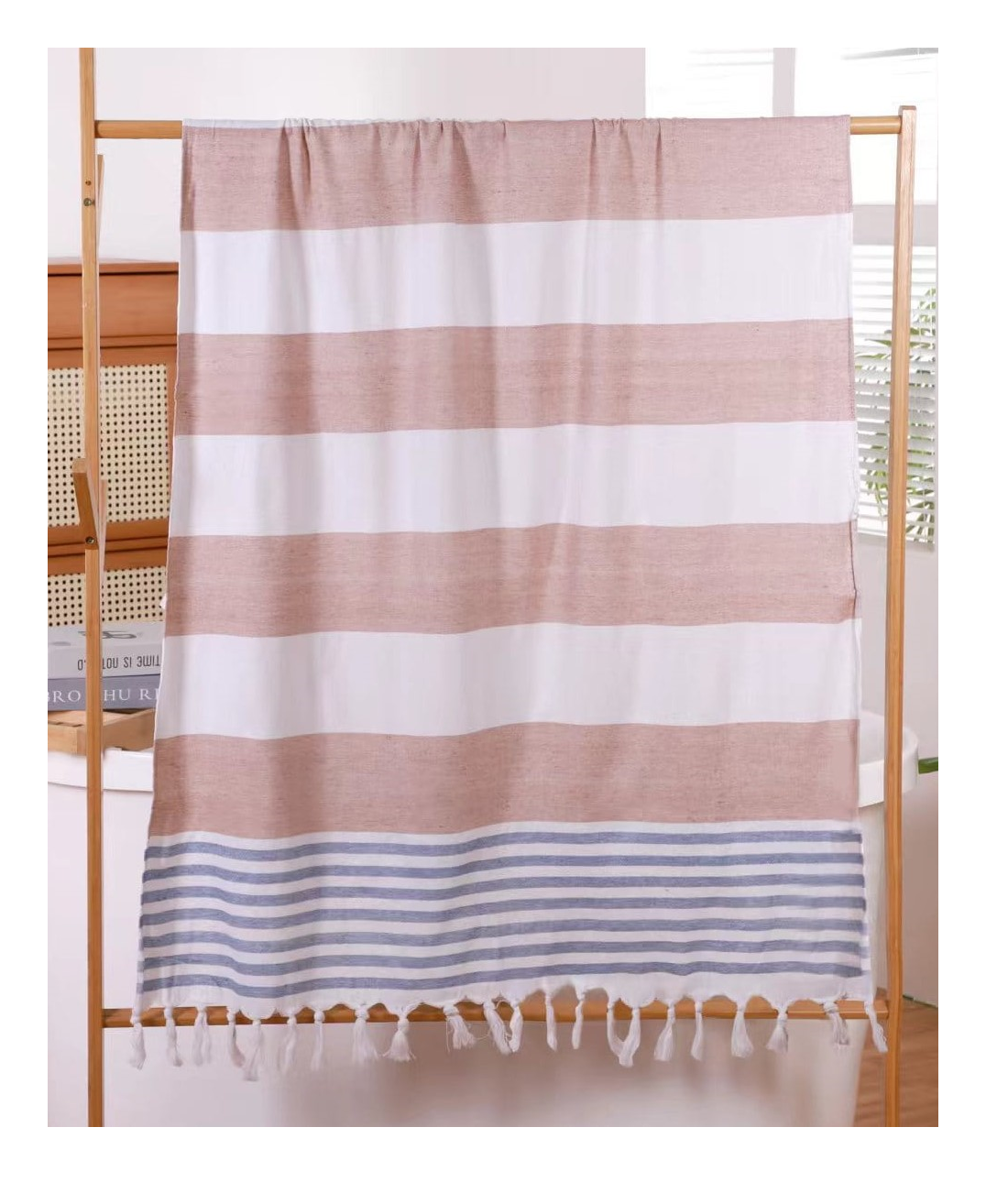 Ręcznik Plażowy 90x180 z frędzlami Pasy Beżowe