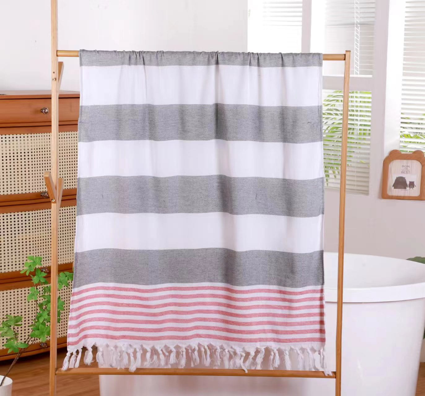 Ręcznik Plażowy 90x180 z frędzlami Pasy Popielate