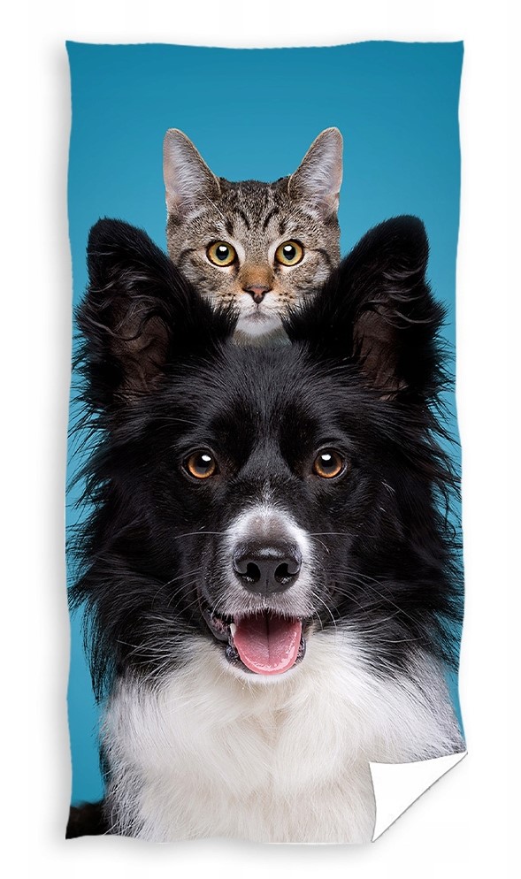 Ręcznik plażowy kąpielowy 70x140 Pies Border Coli z kotkiem