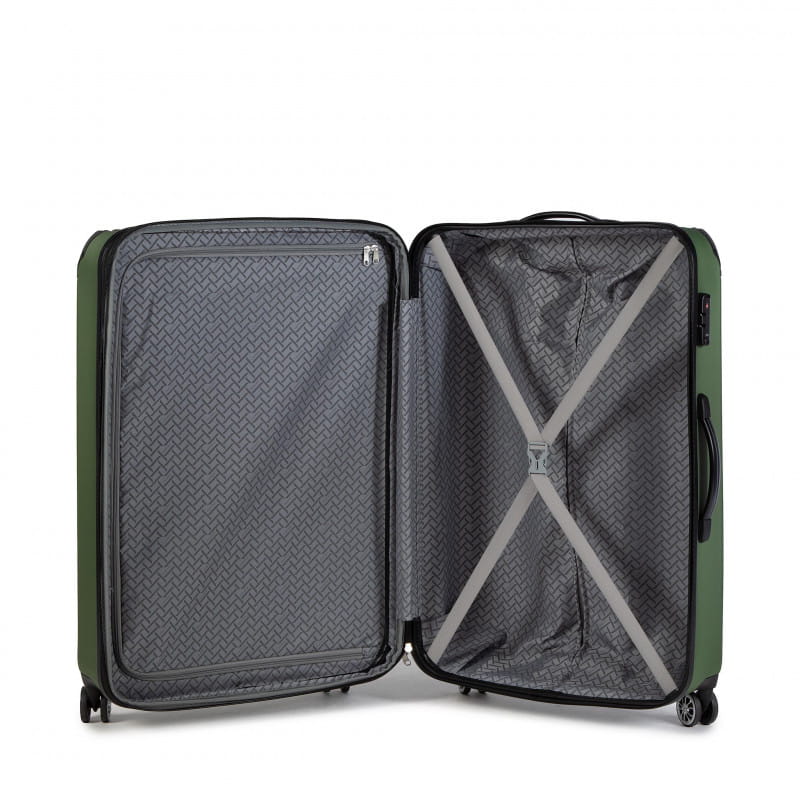 - Dodatkowe cechy: Taśmy spinające komorę, Uchwyty górne i boczne, Podwójne suwaki wysokiej jakości, Teleskopowa rączka, Komora zamykana na suwak, suwak poszerzający walizkę