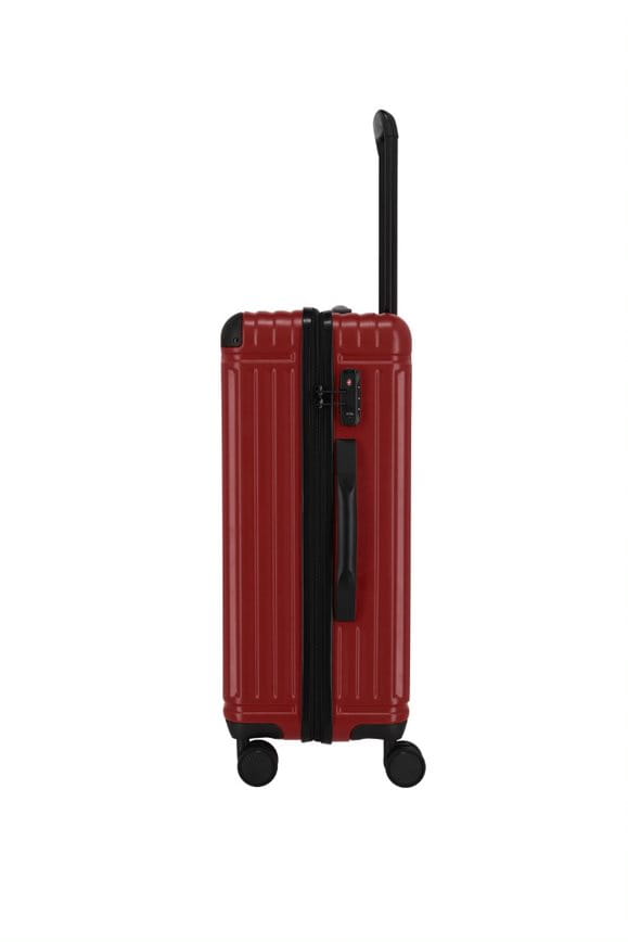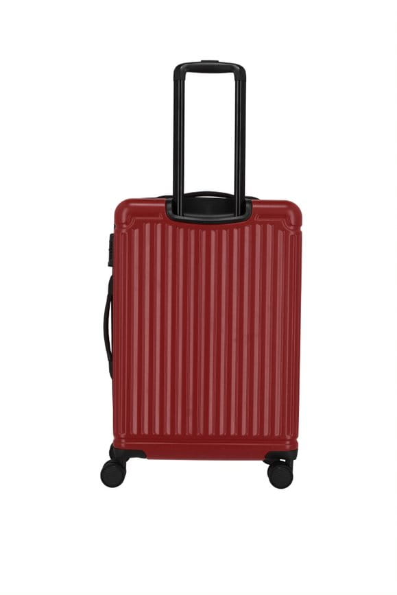 Walizka ŚREDNIA TRAVELITE 072648.70 z kolekcji CRUISE wykonana została z bardzo wytrzymałego i lekkiego materiału ABS w kolorze BORDOWYM. Bagaż wyposażony jest w cztery podwójne kółka ciche na każdym podłożu, które ułatwiają prowadzenie bagażu. Wysuwany aluminiowy uchwyt z blokadą oraz uchwyt górny pozwalają na swobodne przenoszenie. Wewnątrz znajduje się przestronna komora z elastycznymi pasami utrzymującymi bagaż, a klapa walizki zamykana jest na zamek. Dzięki funkcjonalnie podzielonemu wnętrzu pakowanie staje się dużo łatwiejsze. Za bezpieczeństwo bagażu podczas podróży odpowiada zamek szyfrowy TSA.