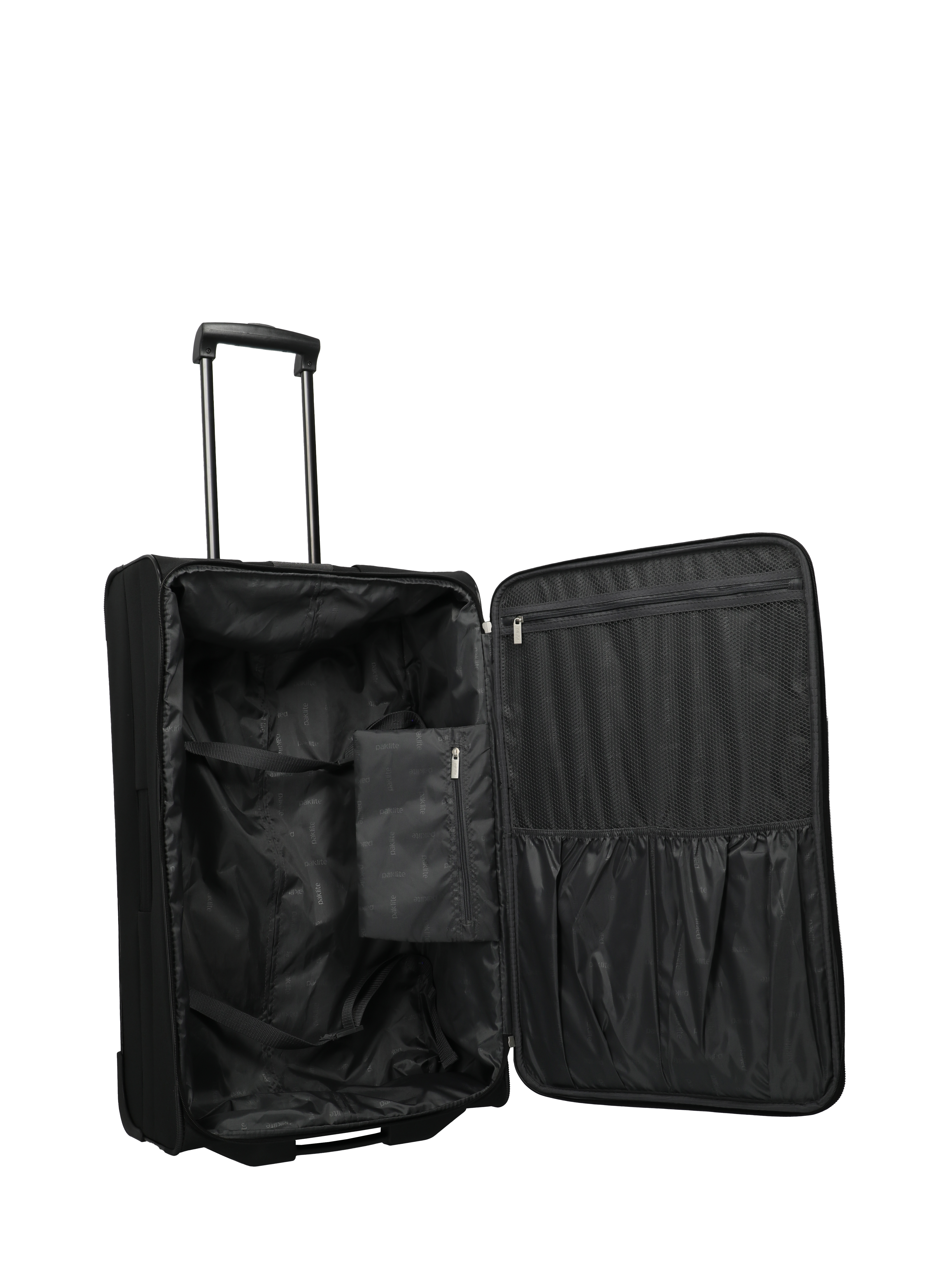 Walizka została wykonana z wytrzymałego poliestru, który jest lekki, odporny na codzienne użytkowanie i łatwy w utrzymaniu czystości. Stabilna konstrukcja oraz 2 solidne koła umożliwiają płynne prowadzenie bagażu, nawet przy pełnym obciążeniu. Przemyślany układ wnętrza pomaga w dobrej organizacji zawartości.