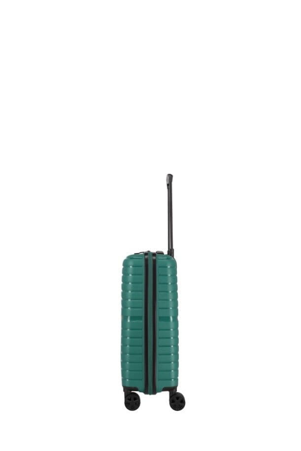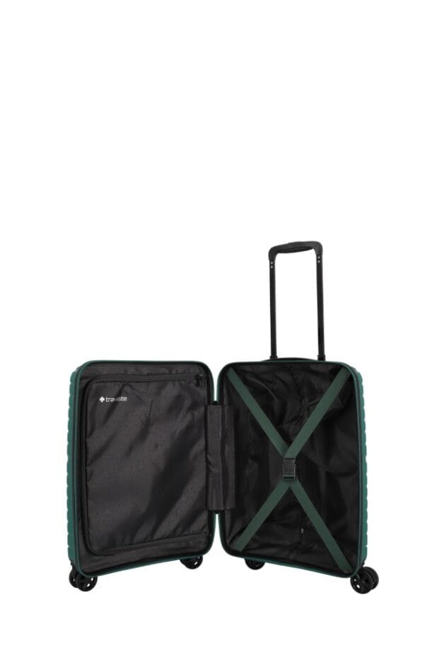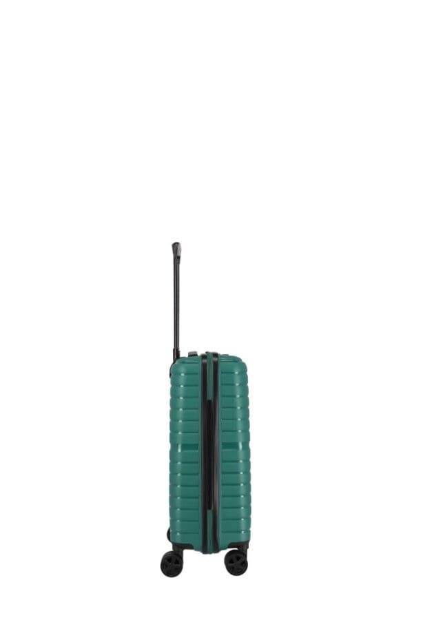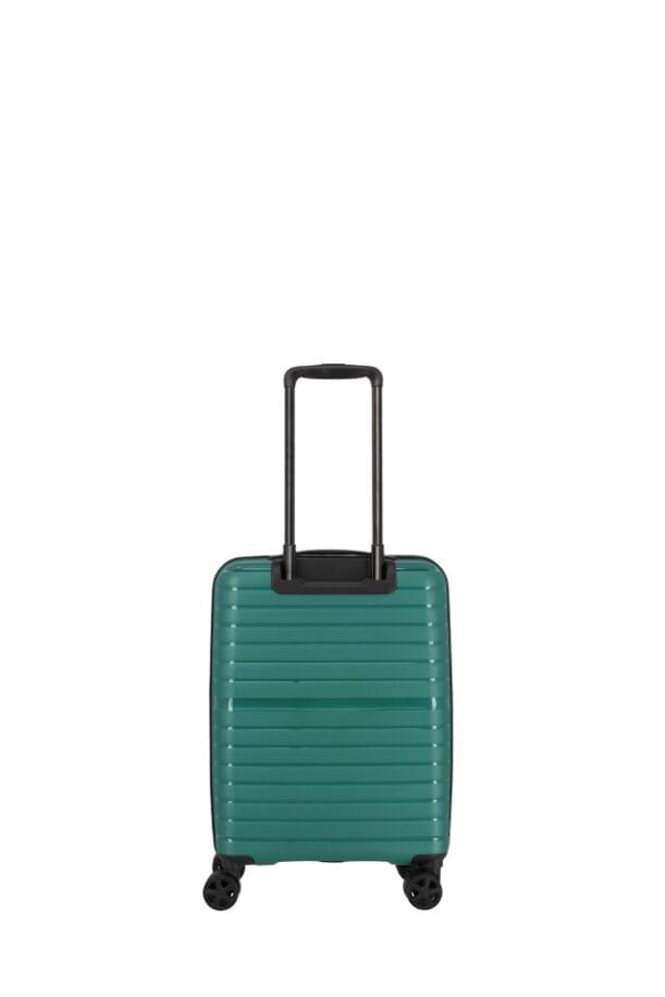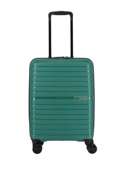 walizka kabinowa TRAVELITE 076540.80 firmy Travelite z kolekcji TRIENT wykonana została z bardzo wytrzymałego i lekkiego materiału polipropylen w kolorze zielonym. Bagaż wyposażony jest w cztery podwójne kółka ciche na każdym podłożu, które ułatwiają prowadzenie bagażu. Wysuwany aluminiowy uchwyt z blokadą oraz uchwyt górny pozwalają na swobodne przenoszenie. Wewnątrz znajduje się przestronna komora z elastycznymi pasami utrzymującymi bagaż, a klapa walizki zamykana jest na zamek. Dzięki funkcjonalnie podzielonemu wnętrzu pakowanie staje się dużo łatwiejsze. Za bezpieczeństwo bagażu podczas podróży odpowiada zamek szyfrowy.