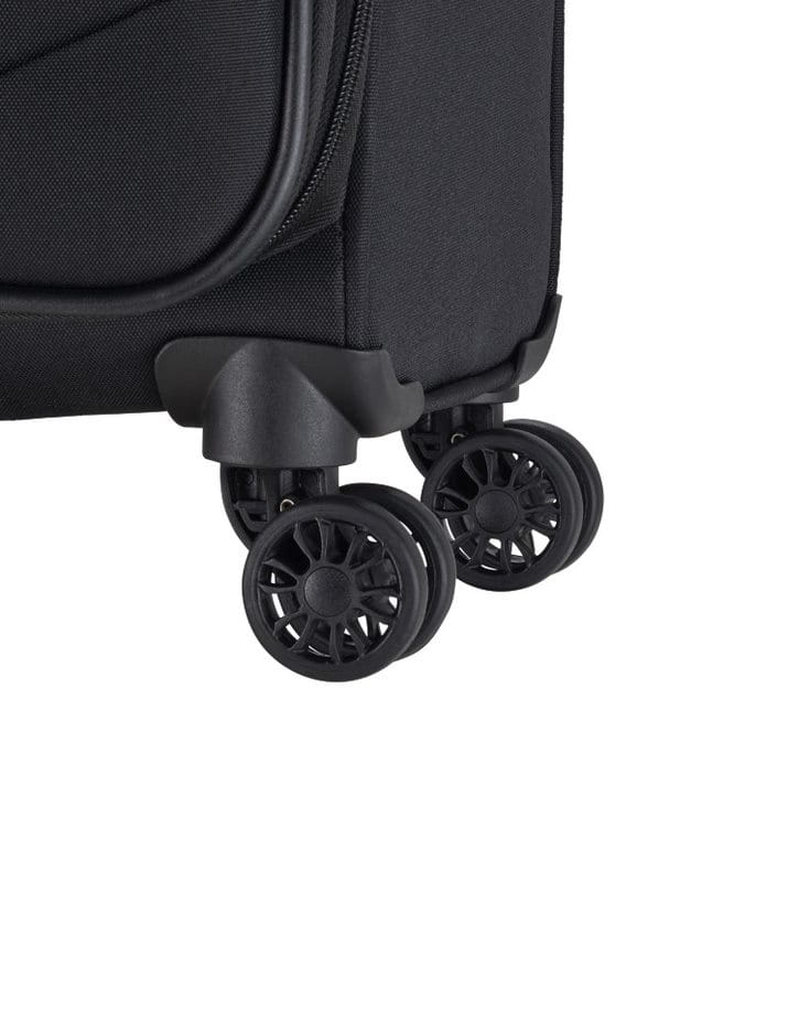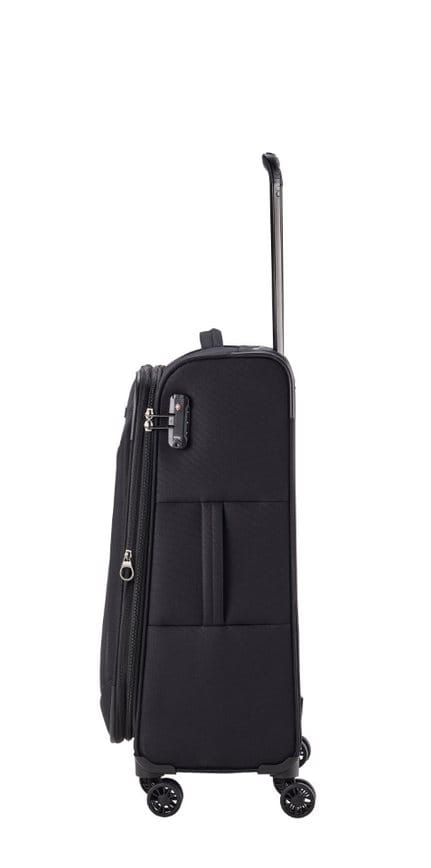 Walizka Kabinowa S TRAVELITE 80048.01 z kolekcji CHIOS wykonana została z bardzo wytrzymałego i lekkiego poliestru Two-Tone w kolorze czarnym. Bagaż wyposażony jest w cztery kółka ciche na każdym podłożu, które ułatwiają prowadzenie bagażu. Wysuwany aluminiowy uchwyt z blokadą oraz uchwyt górny pozwalają na swobodne przenoszenie. Wewnątrz znajduje się przestronna komora z elastycznymi pasami utrzymującymi bagaż, a klapa walizki zamykana jest na zamek. Dzięki funkcjonalnie podzielonemu wnętrzu pakowanie staje się dużo łatwiejsze. Na zewnątrz na przodzie znajdują się praktyczne kieszenie.