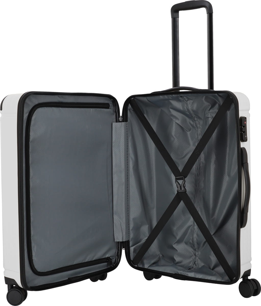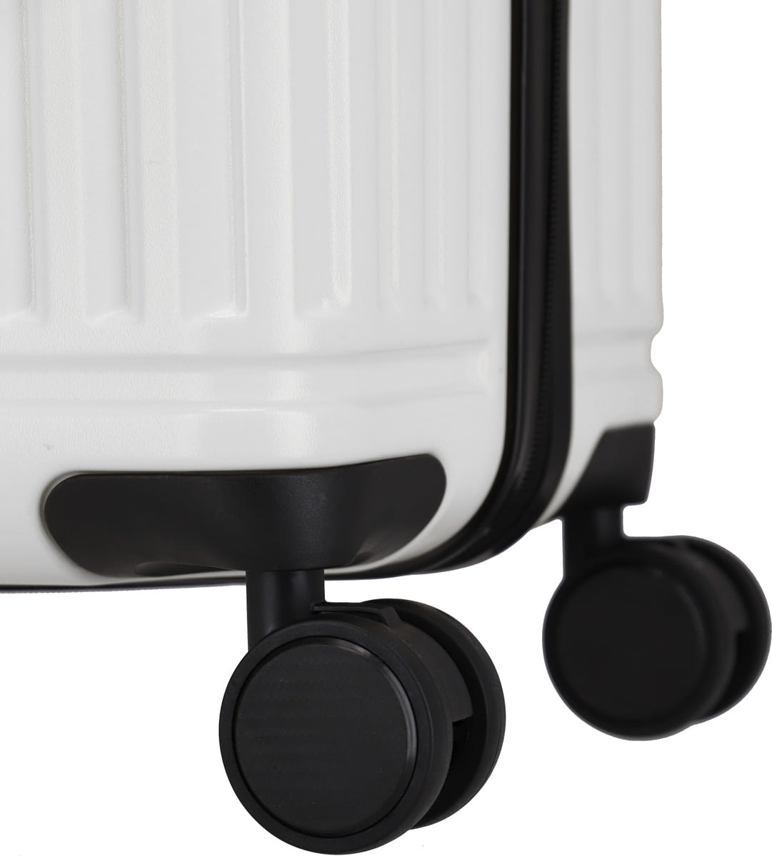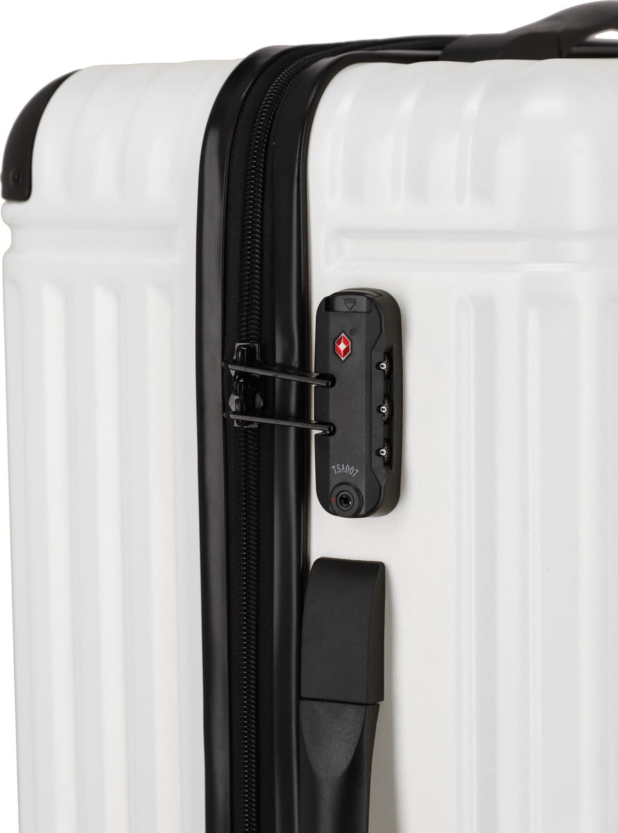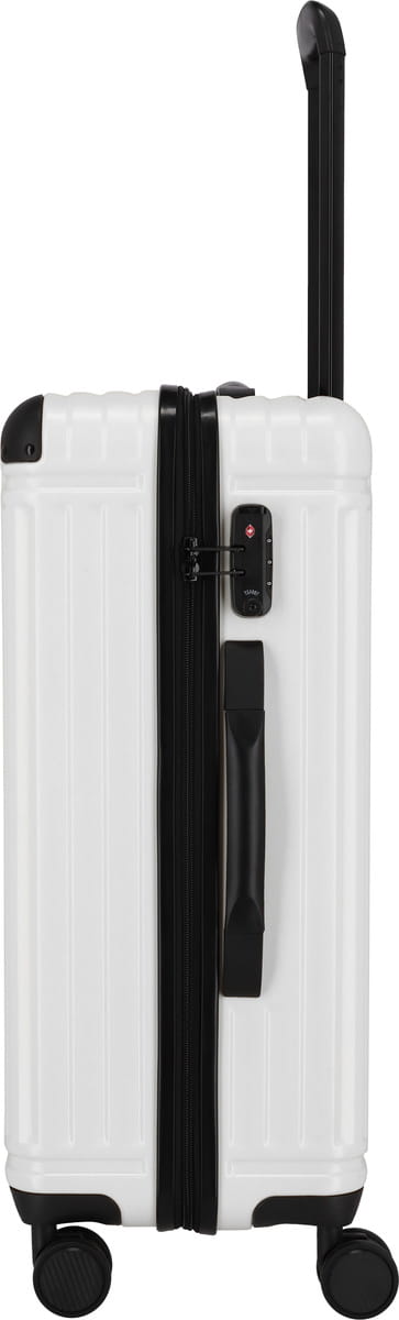 Walizka ŚREDNIA TRAVELITE 072648.30 z kolekcji CRUISE wykonana została z bardzo wytrzymałego i lekkiego materiału ABS w kolorze BIAŁYM. Bagaż wyposażony jest w cztery podwójne kółka ciche na każdym podłożu, które ułatwiają prowadzenie bagażu. Wysuwany aluminiowy uchwyt z blokadą oraz uchwyt górny pozwalają na swobodne przenoszenie. Wewnątrz znajduje się przestronna komora z elastycznymi pasami utrzymującymi bagaż, a klapa walizki zamykana jest na zamek. Dzięki funkcjonalnie podzielonemu wnętrzu pakowanie staje się dużo łatwiejsze. Za bezpieczeństwo bagażu podczas podróży odpowiada zamek szyfrowy TSA.