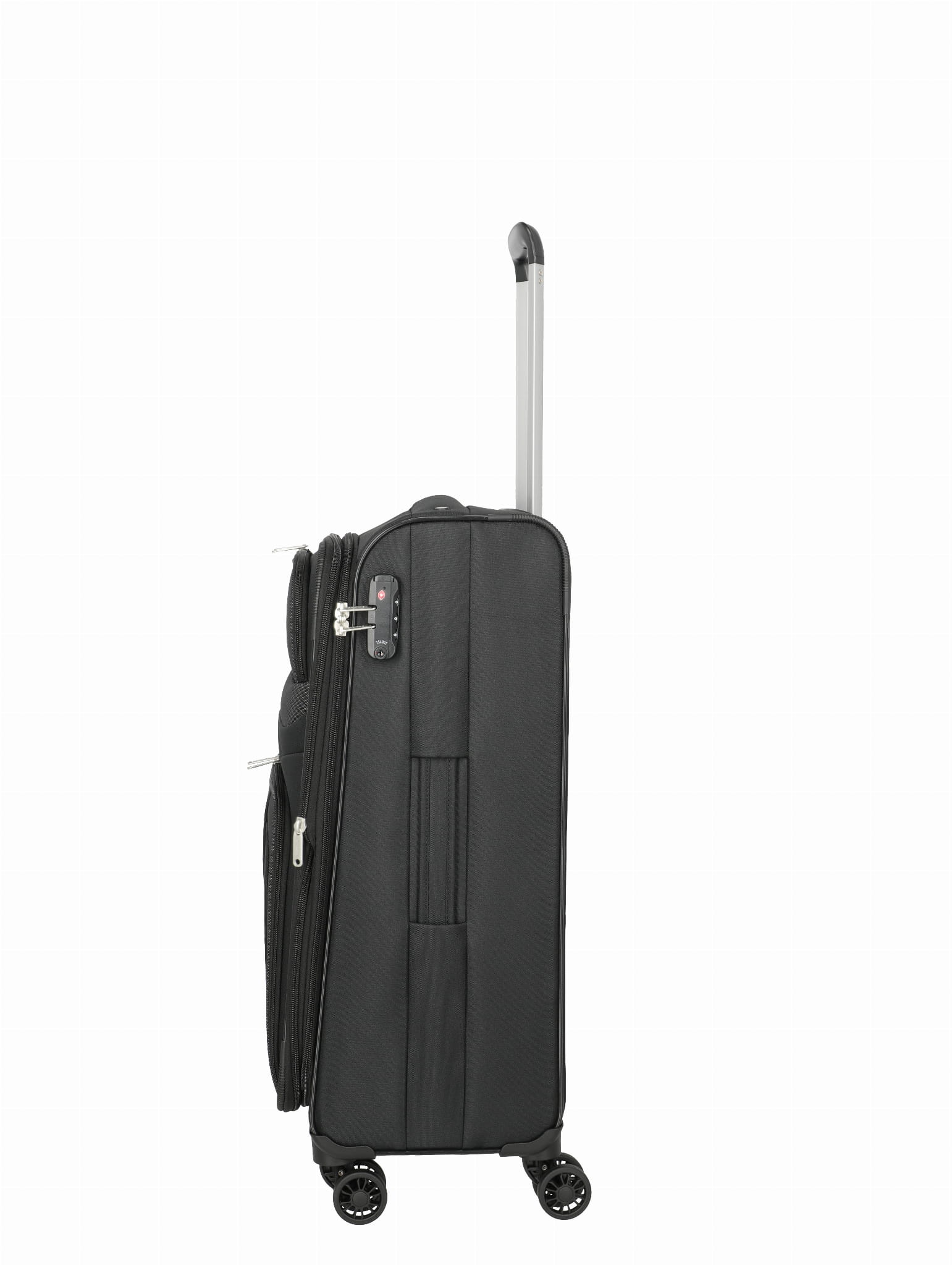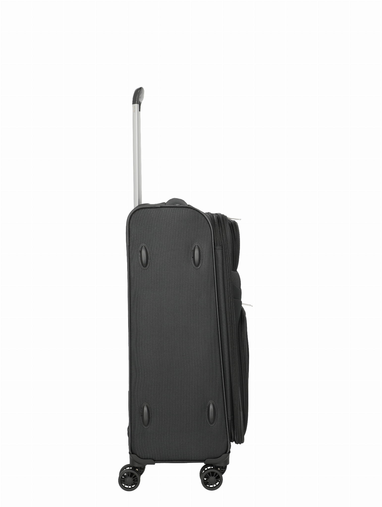 Walizka ŚREDNIA TRAVELITE z kolekcji ORLANDO wykonana została z bardzo wytrzymałego i lekkiego poliestru Two-Tone w kolorze czarnym. Bagaż wyposażony jest w cztery kółka ciche na każdym podłożu, które ułatwiają prowadzenie bagażu. Wysuwany aluminiowy uchwyt z blokadą oraz uchwyt górny pozwalają na swobodne przenoszenie. Wewnątrz znajduje się przestronna komora z elastycznymi pasami utrzymującymi bagaż, a klapa walizki zamykana jest na zamek. Dzięki funkcjonalnie podzielonemu wnętrzu pakowanie staje się dużo łatwiejsze. Na zewnątrz na przodzie znajdują się praktyczne kieszenie. Za bezpieczeństwo bagażu podczas podróży odpowiadają wzmacniane boki, narożniki i środek walizki.