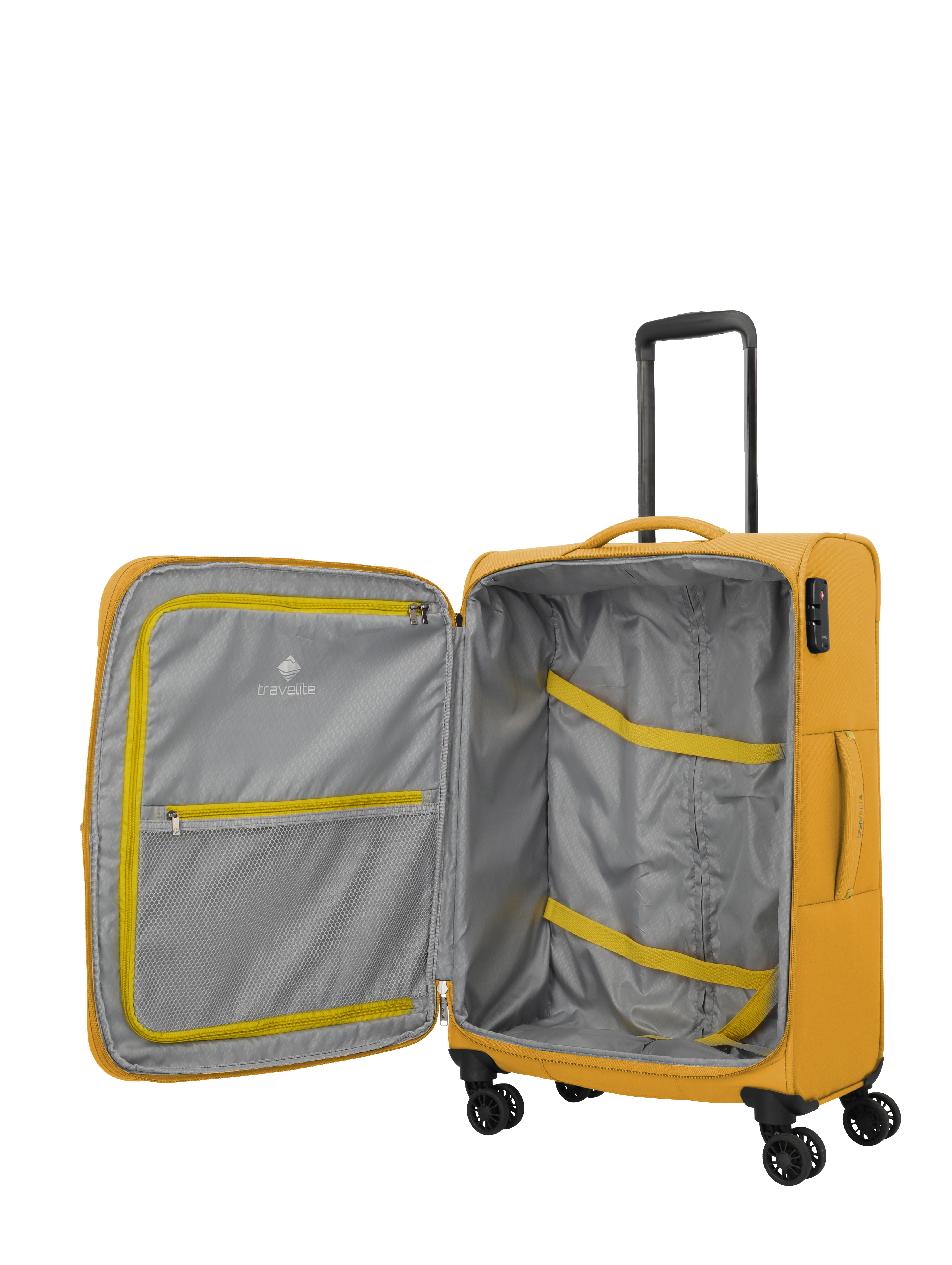 ✅ Regulowane pasy wewnętrzne – utrzymują zawartość walizki na miejscu.