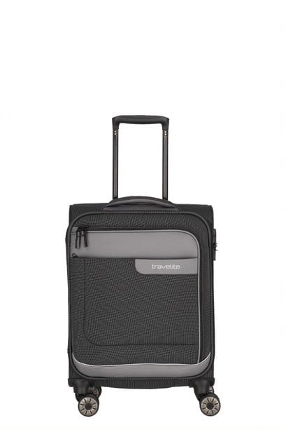Walizka kabinowa TRAVELITE 92848 z kolekcji VIA wykonana została z bardzo wytrzymałego i lekkiego poliestru Two-Tone w kolorze antracytowym. Bagaż wyposażony jest w cztery kółka ciche na każdym podłożu, które ułatwiają prowadzenie bagażu. Wysuwany aluminiowy uchwyt z blokadą oraz uchwyt górny pozwalają na swobodne przenoszenie. Wewnątrz znajduje się przestronna komora z elastycznymi pasami utrzymującymi bagaż, a klapa walizki zamykana jest na zamek. Dzięki funkcjonalnie podzielonemu wnętrzu pakowanie staje się dużo łatwiejsze. Na zewnątrz na przodzie znajdują się praktyczne kieszenie. Za bezpieczeństwo bagażu podczas podróży odpowiada zamek szyfrowy TSA.