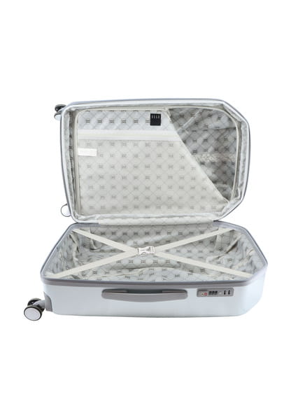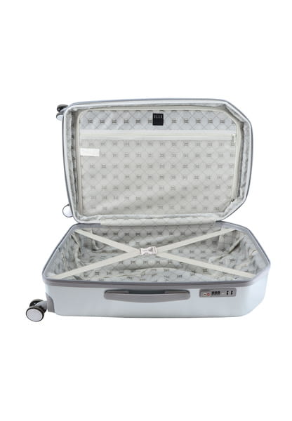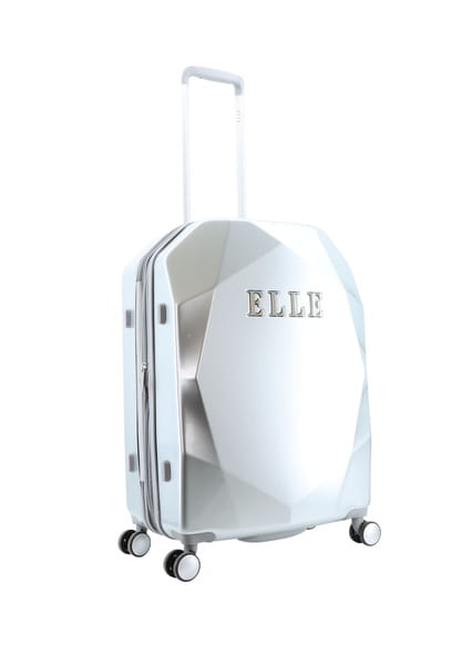 Walizka średnia ELLE Diamond to idealne połączenie nowoczesnego designu, wysokiej jakości materiałów i funkcjonalności. Wykonana z wytrzymałego i lekkiego materiału ABS wzmocnionego policarbonem, zapewniającego ochronę i trwałość. Zamek szyfrowy TSA oraz stelaż aluminiowy z regulowaną wysokością z przyciskiem blokującym to cechy, które podnoszą poziom bezpieczeństwa i wygody podróżowania. Cztery podwójne koła zapewniają płynne i stabilne przemieszczanie się, a cztery plastikowe podstawki boczne gwarantują stabilność walizki podczas postoju. Wnętrze wyposażone w pasy zabezpieczające zapobiega przemieszczaniu się zawartości podczas podróży.