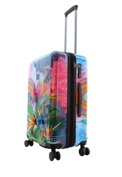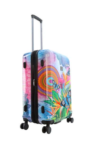 Walizka średnia Saxoline BUTTERFLY Nature to nie tylko praktyczne rozwiązanie podczas podróży, ale także wyjątkowa ozdoba dzięki swojemu kolorowemu nadrukowi motyli. Zaprojektowana z myślą o użytkownikach poszukujących zarówno funkcjonalności, jak i estetyki, ta walizka z pewnością przyciągnie spojrzenia na lotnisku czy dworcu.