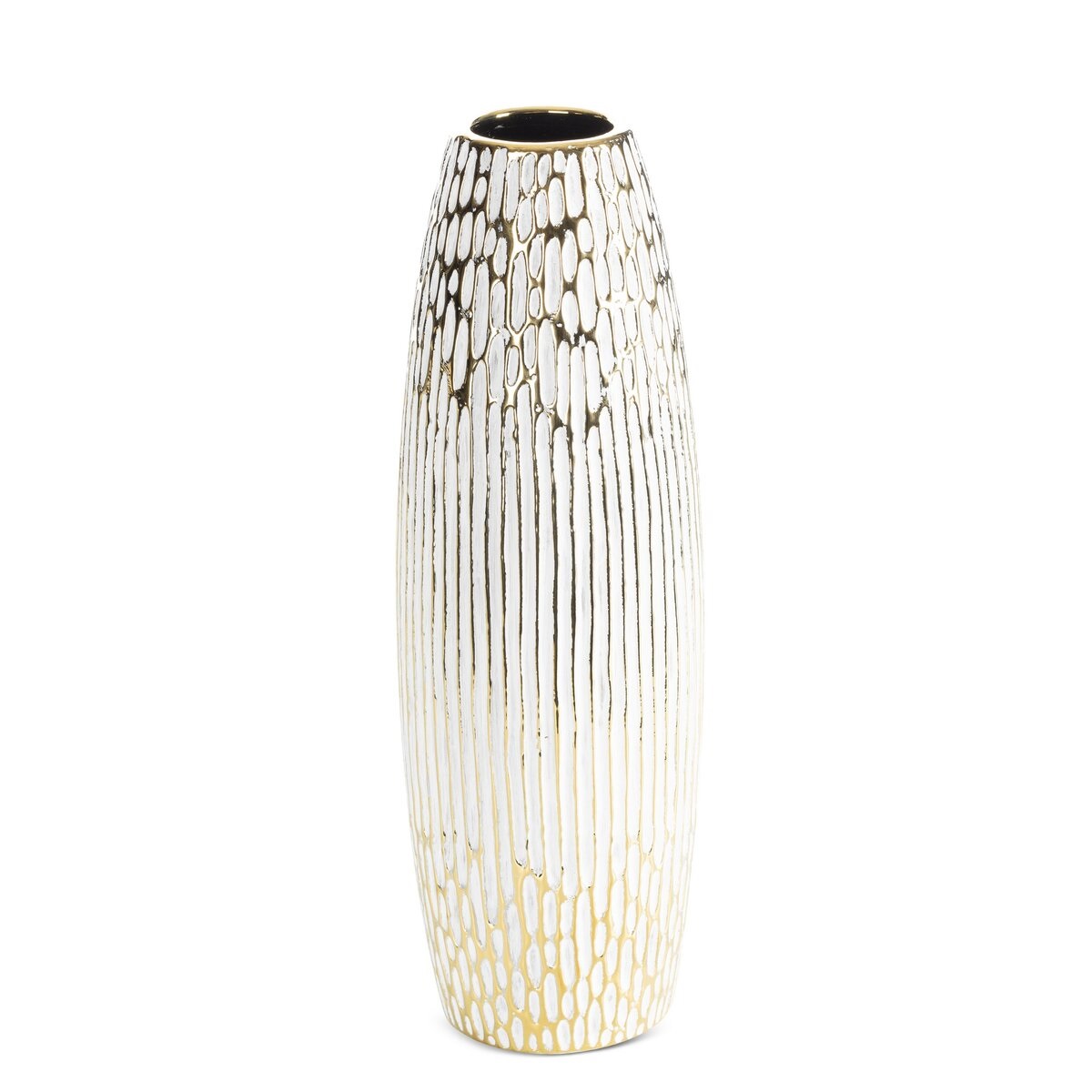 Wazon Dekoracyjny ANDREA – biały ze złotym akcentem, 13 x 13 x 40 cm