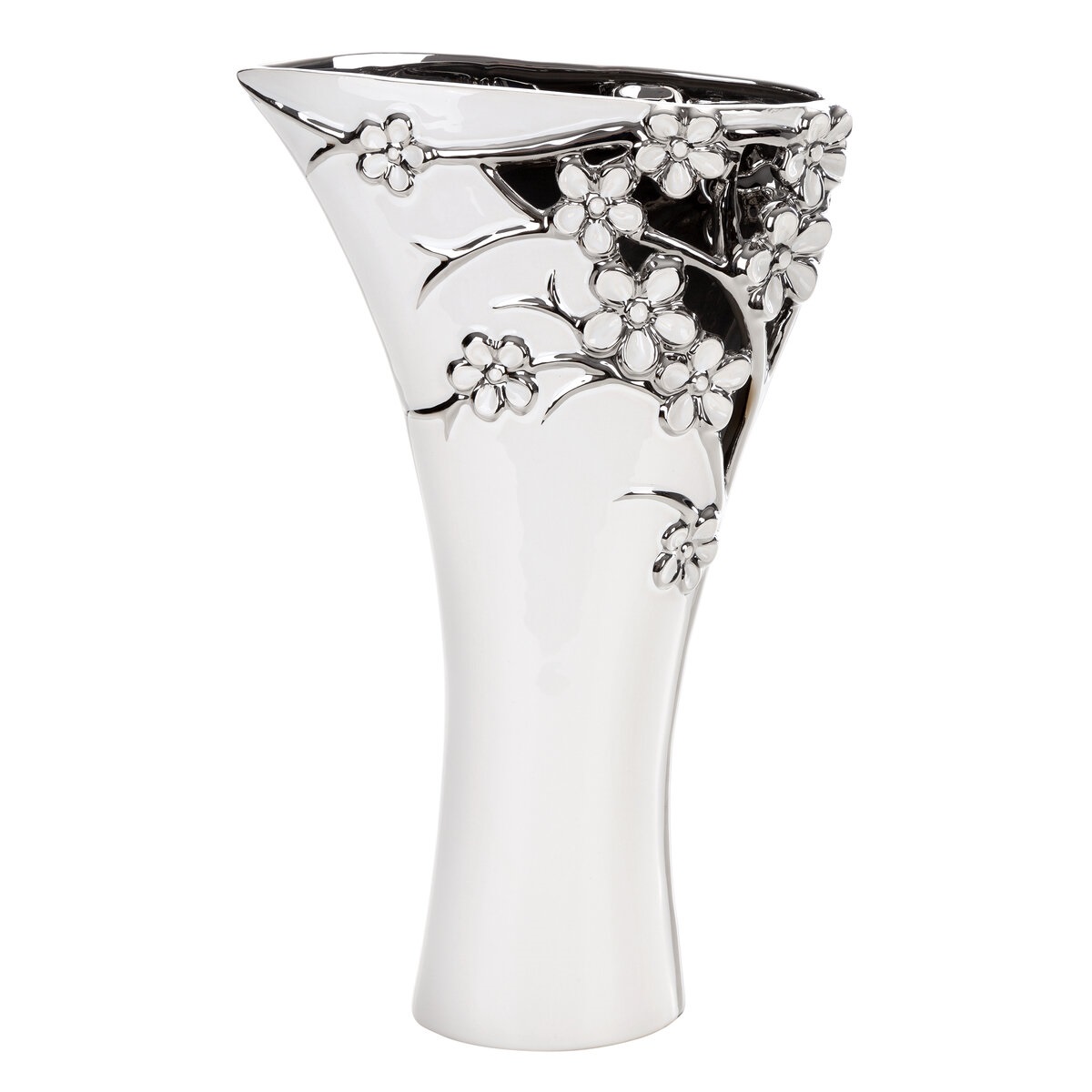Wazon Dekoracyjny KARIN – biały ze srebrnym akcentem, 39 cm