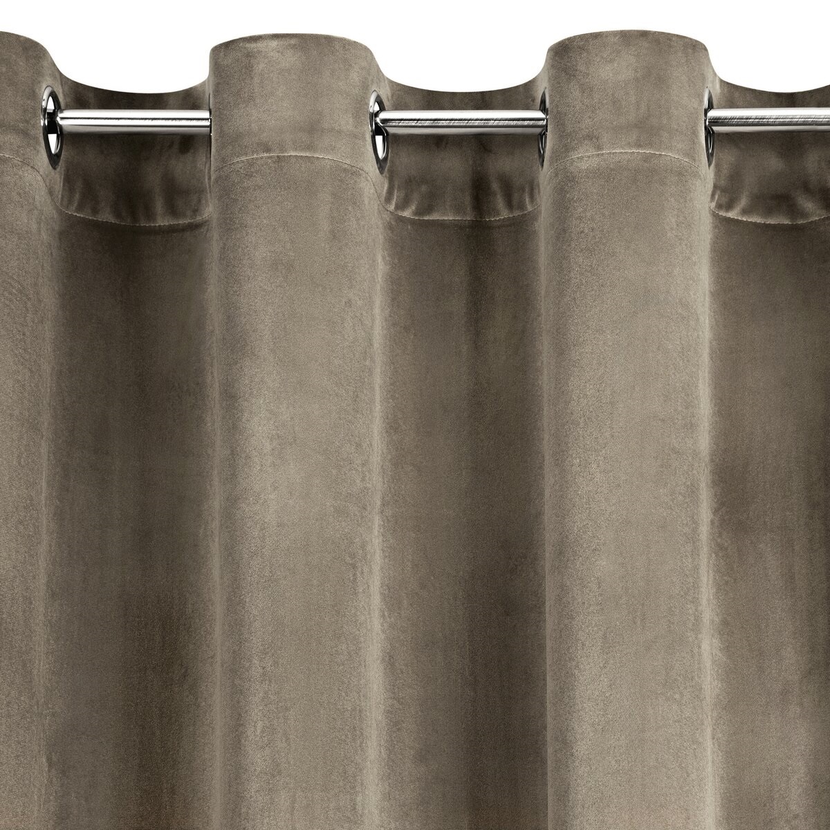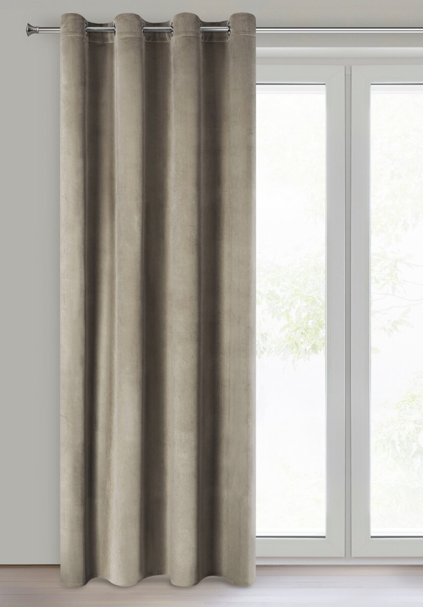 Zasłona zapewnia średni stopień zaciemnienia, dzięki czemu skutecznie ogranicza dopływ światła dziennego, nie przyciemniając całkowicie pomieszczenia. Praktyczne metalowe przelotki (koła) umożliwiają szybkie i wygodne zawieszenie na karniszu oraz gwarantują estetyczne, równe fale.